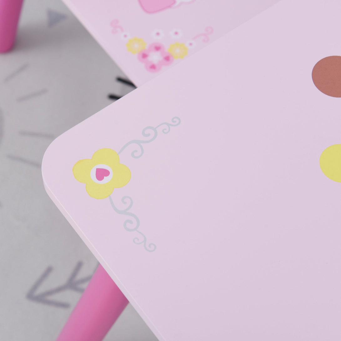 This HOMCOM kids table and chair set will be a great addition to a kids bedroom. Comes complete with 2 chairs and 1 table. Made from Pine wood and MDF board, this set is durable for long-lasting use. And features attractive apperance, this will be a great addition to any kid room décor. Also a perfect birthday and Christmas gift for you lovely kid. Don't hesitate to buy it!