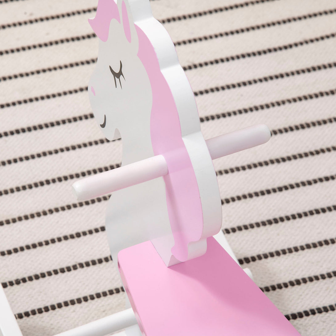 Need a nostalgic toy to keep your child active while having fun? This cute ride on horse from HOMCOM is styled after a unicorn, providing children with a unique character to accompany their imagination-fueled adventures. While having fun, rockers can help kids improve their mobility, strengthen muscles during motion. This rocking toy comes with handrails and pedals for added safety. Bridge the generations between you and your child with a toy you remember.