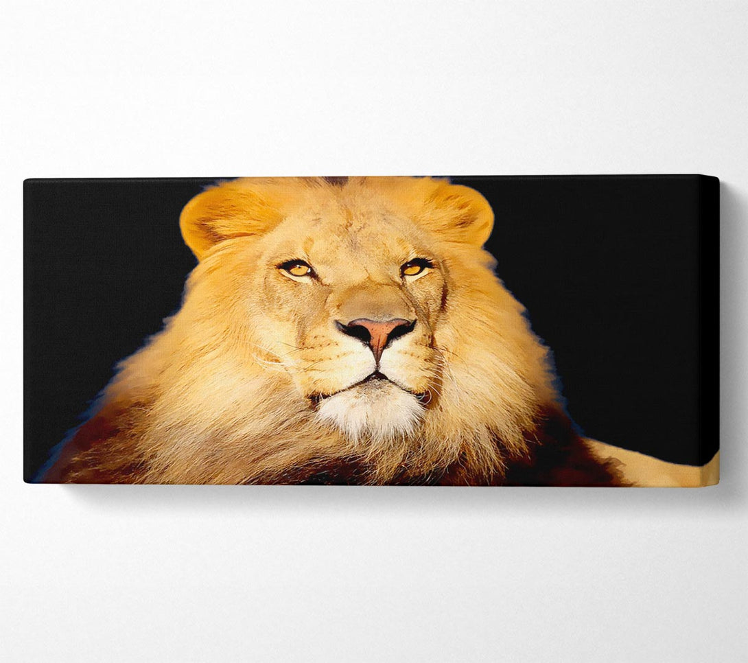 King Of The Jungle Lion canvas, printed on coated polyester canvas. Mounted on to a 44mm box frame, ready to hang.