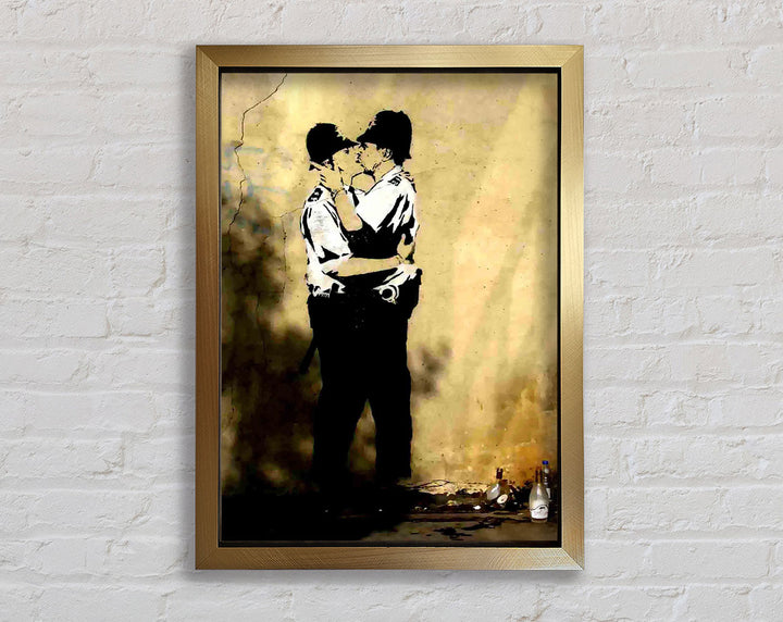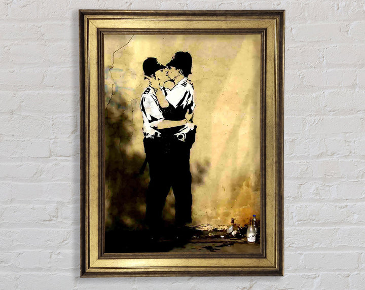 Each piece is handmade in the United Kingdom, ensuring top-notch quality and craftsmanship. The print comes ready to hang, making it a hassle-free addition to your art collection. With its bold imagery and exceptional build, the Kissing Coppers Portrait Framed Print is a conversation starter and a beautiful addition to any room. Enhance your surroundings with this remarkable piece of framed art today.