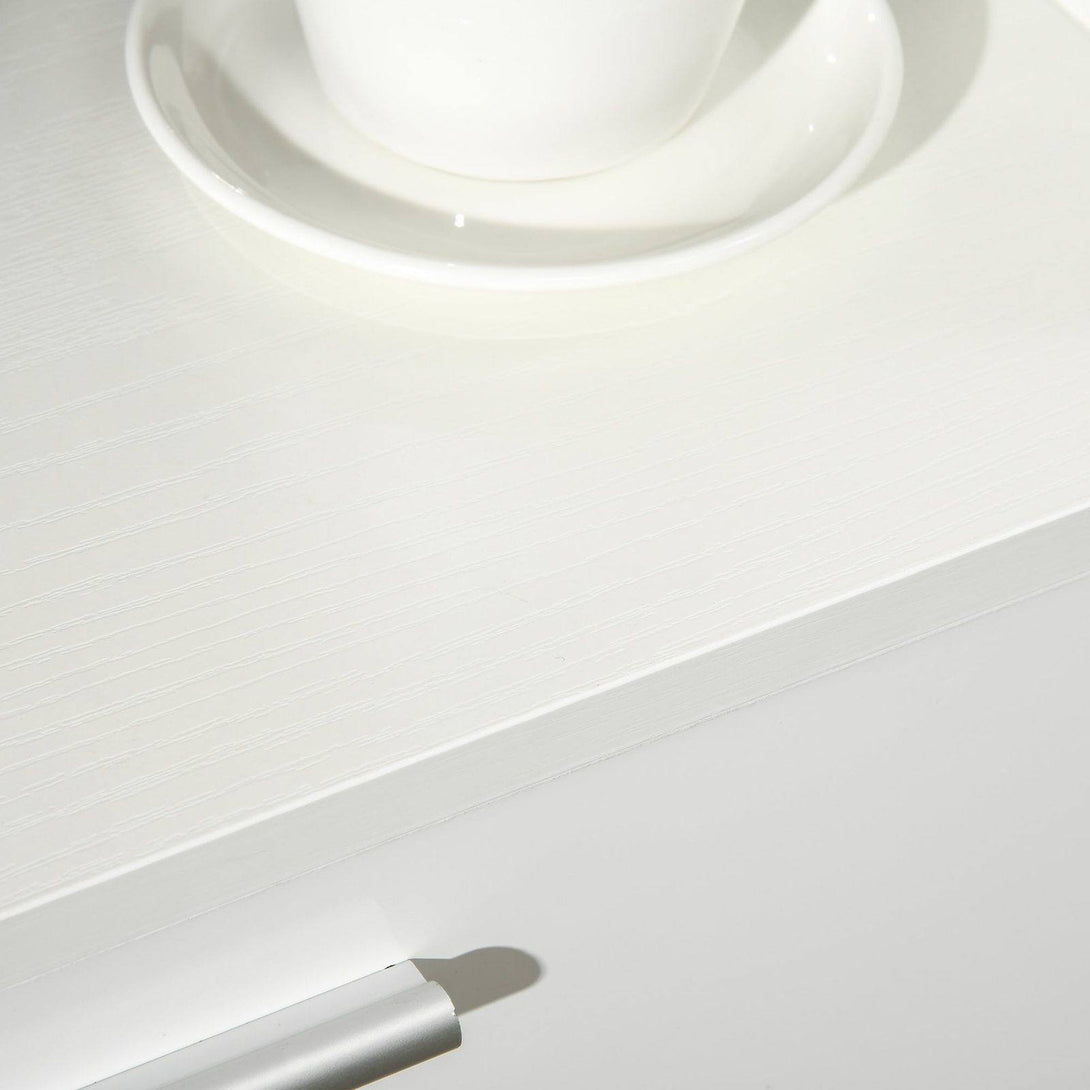 - Colour: High Gloss White Front Panel, White Wood Grain Side Panel