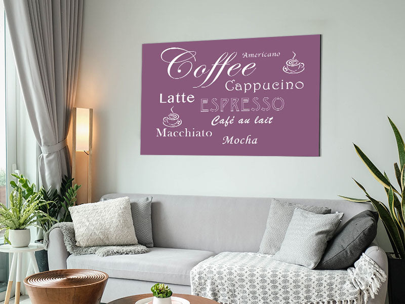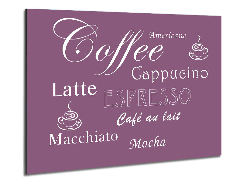 Kitchen Quote Coffee Delight Dusty Pink Printed on brushed aluminium dibond. A modern way to display art and easy to maintain.