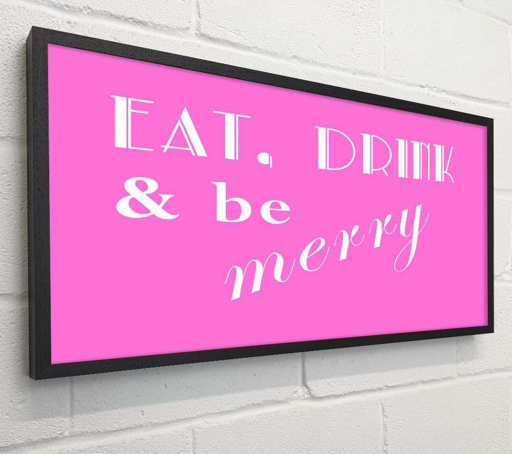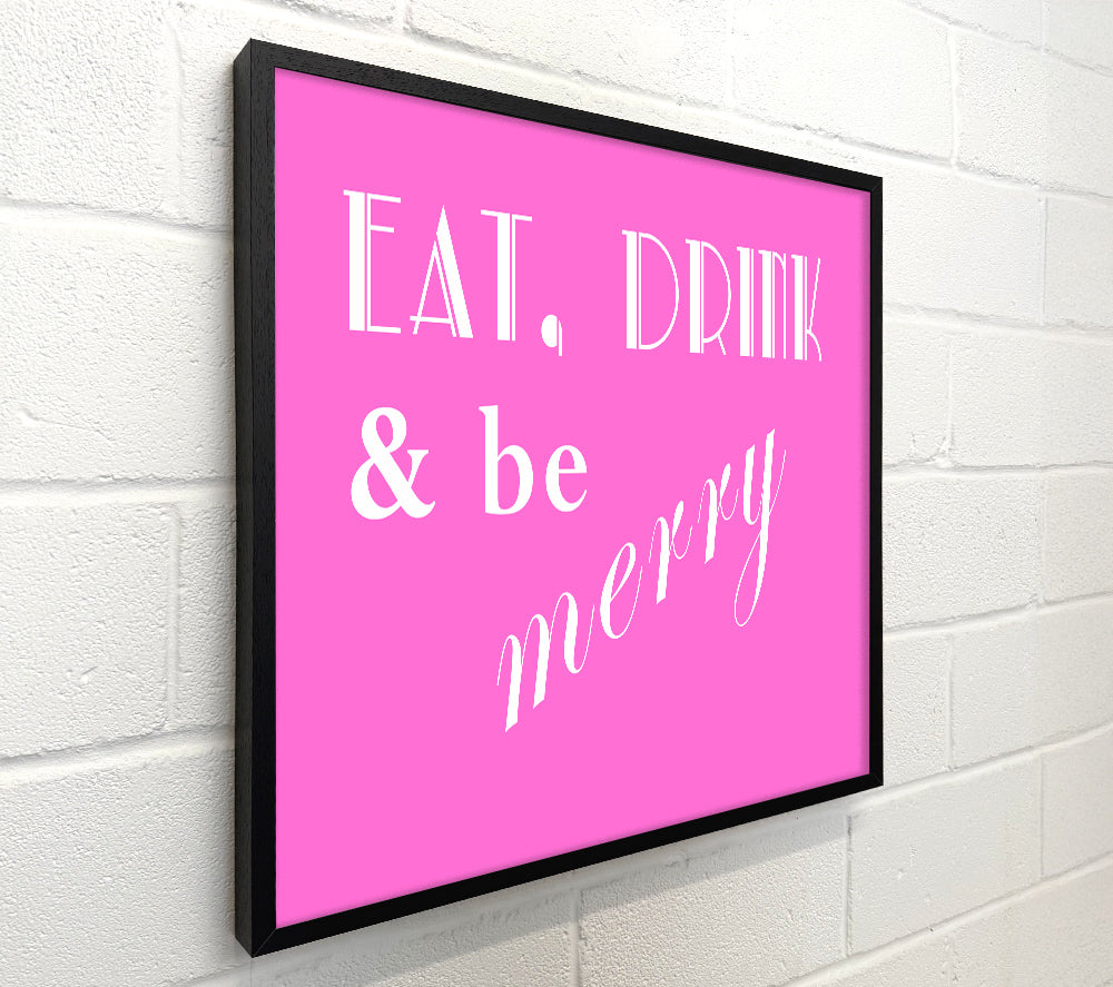 Kitchen Quote Eat Drink n Be Merry Vivid Pink
