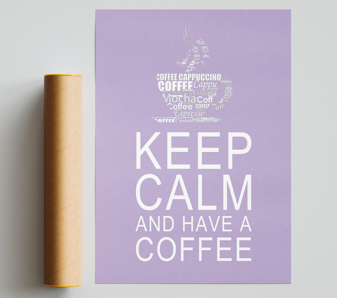 Our Kitchen Quote Keep Calm And Have A Coffee Lilac Poster is printed 260 GSM premium lustre paper that offers vibrant colours and exceptional detail.