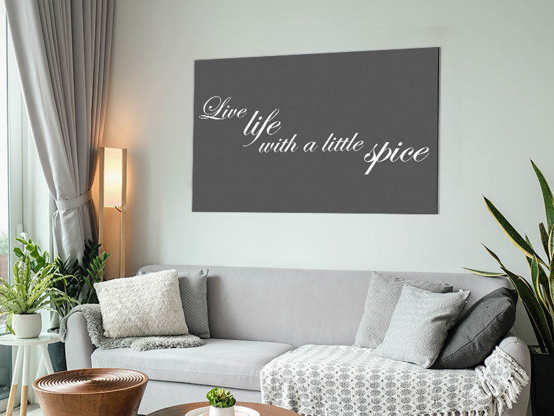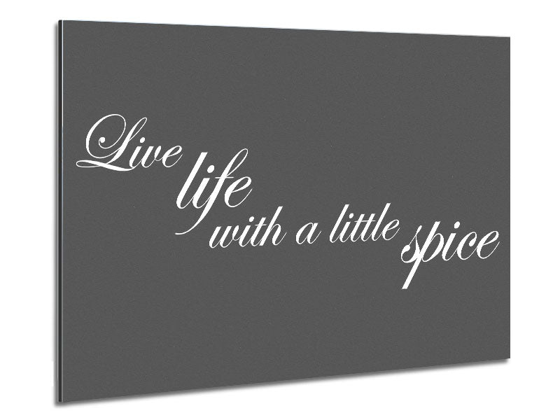 Kitchen Quote Live Life With A Little Spice Grey Printed on brushed aluminium dibond. A modern way to display art and easy to maintain.