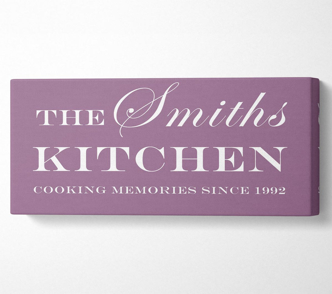 Kitchen Quote Your Family Name And Date Kitchen Dusty Pink canvas, printed on coated polyester canvas. Mounted on to a 44mm box frame, ready to hang.