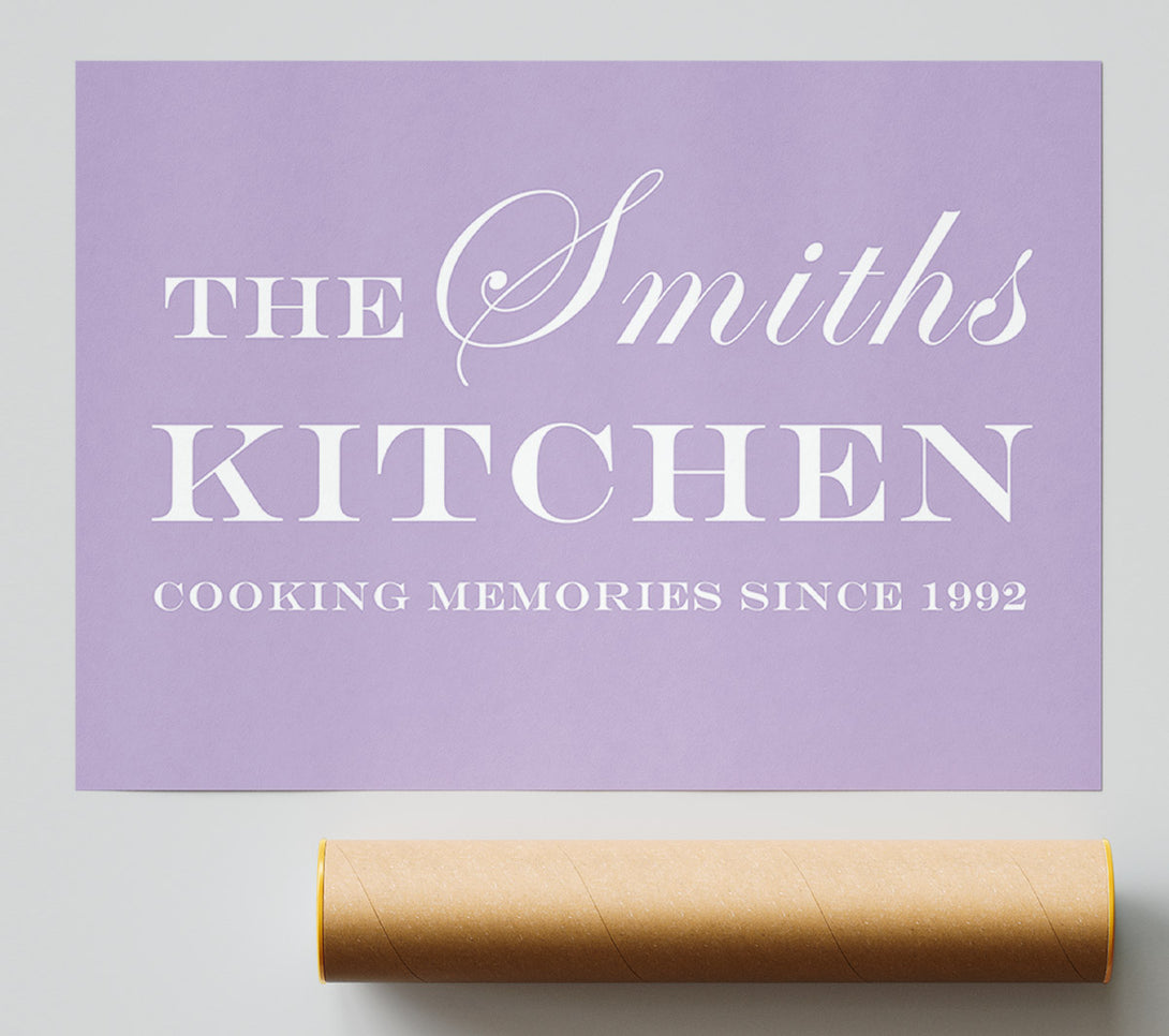 Our Kitchen Quote Your Family Name And Date Kitchen Lilac Poster is printed 260 GSM premium lustre paper that offers vibrant colours and exceptional detail.