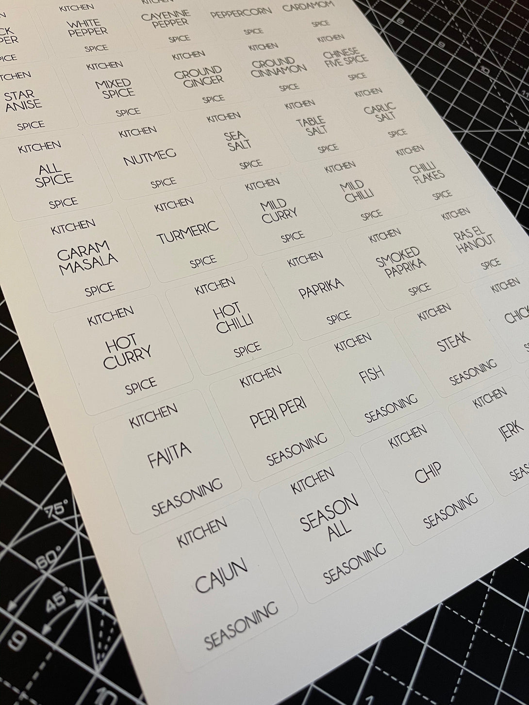 Kitchen Spices & Seasonings Personalised Jar Labels Sticker Bundle Fine Font - 35 Labels