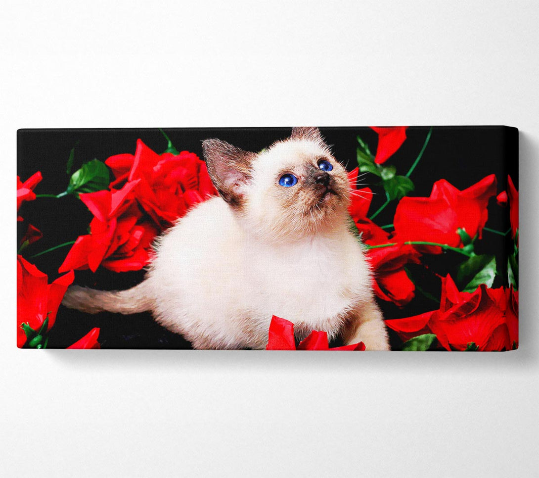 Kitten Roses canvas, printed on coated polyester canvas. Mounted on to a 44mm box frame, ready to hang.