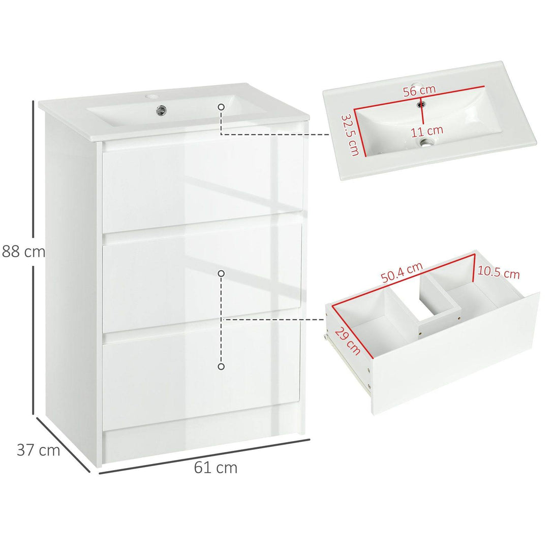 kleankin 600mm Bathroom Vanity Unit with Basin and Single Tap Hole