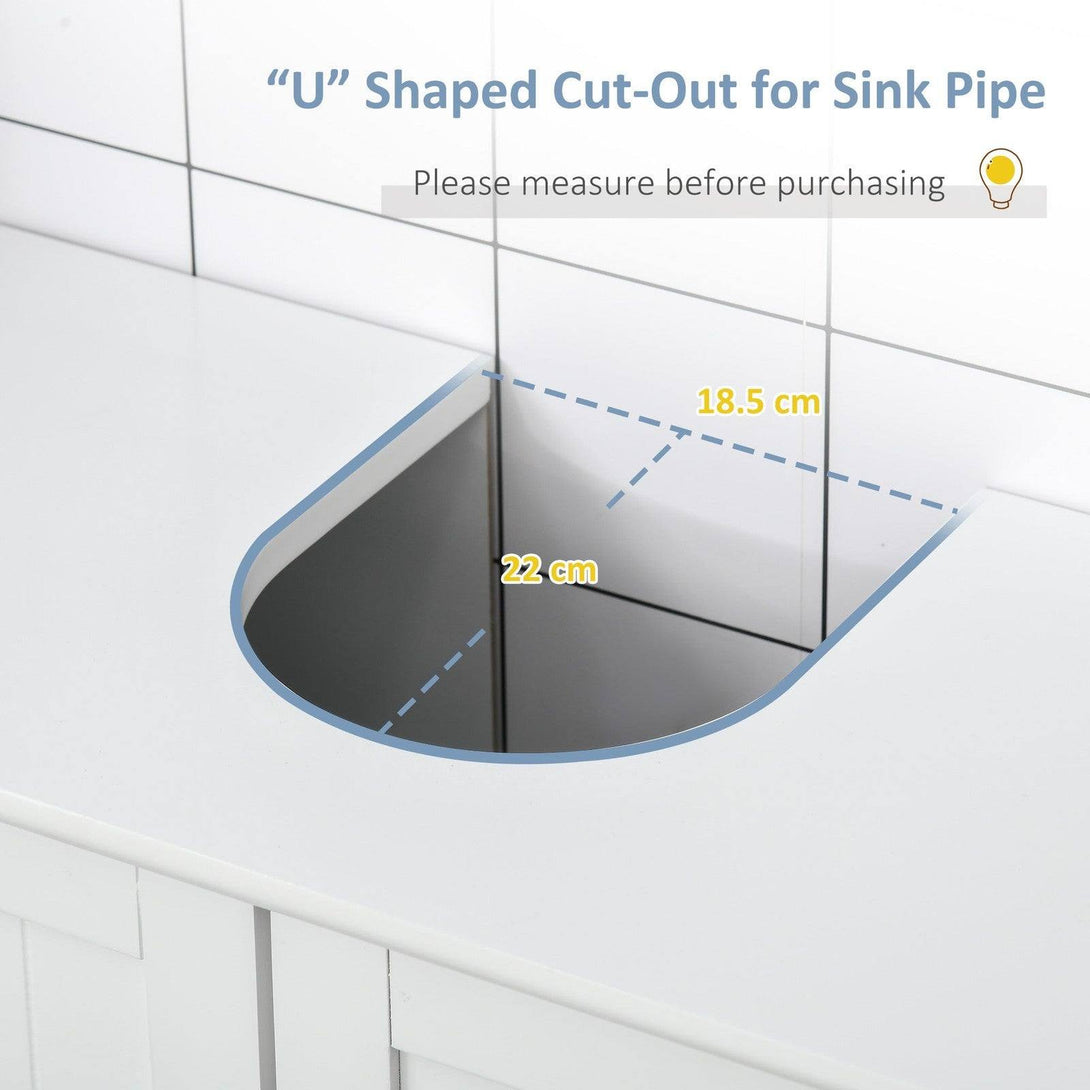 Opt for a traditional aesthetic when choosing under-sink storage with this cabinet from kleankin. Its clean colourway pairs effortlessly with the carved indents and sleek handles. Made from MDF to be solid for daily use, with a smooth paint coating all over for light protection. Inside features an adjustable shelf for organizing and separating toiletries when needed. The 'U' shaped cut out slots into the sink pipe with ease to bring space into your home which you never thought possible before.