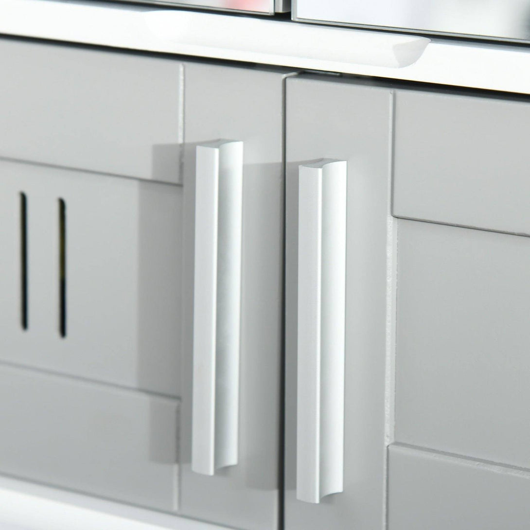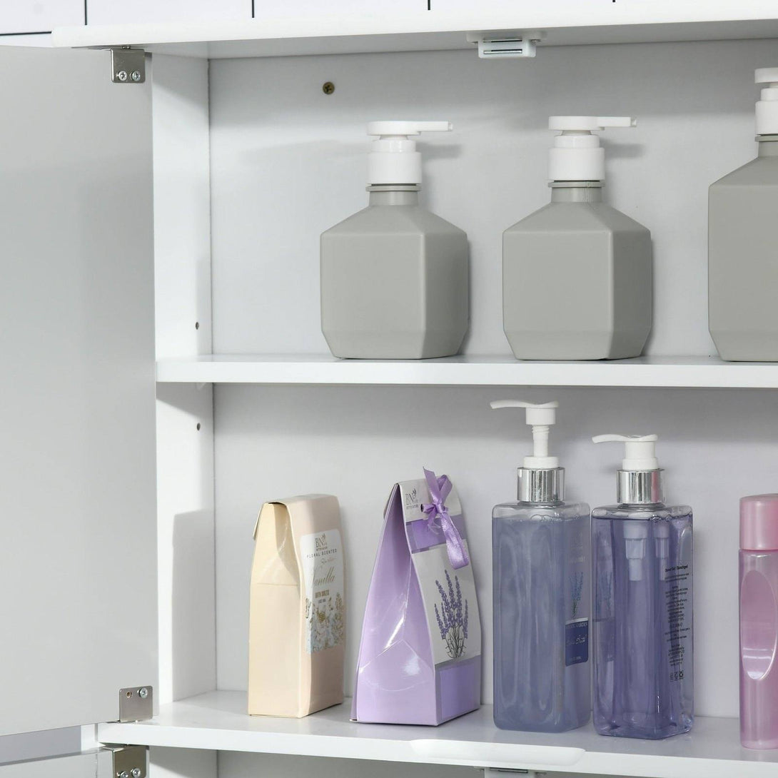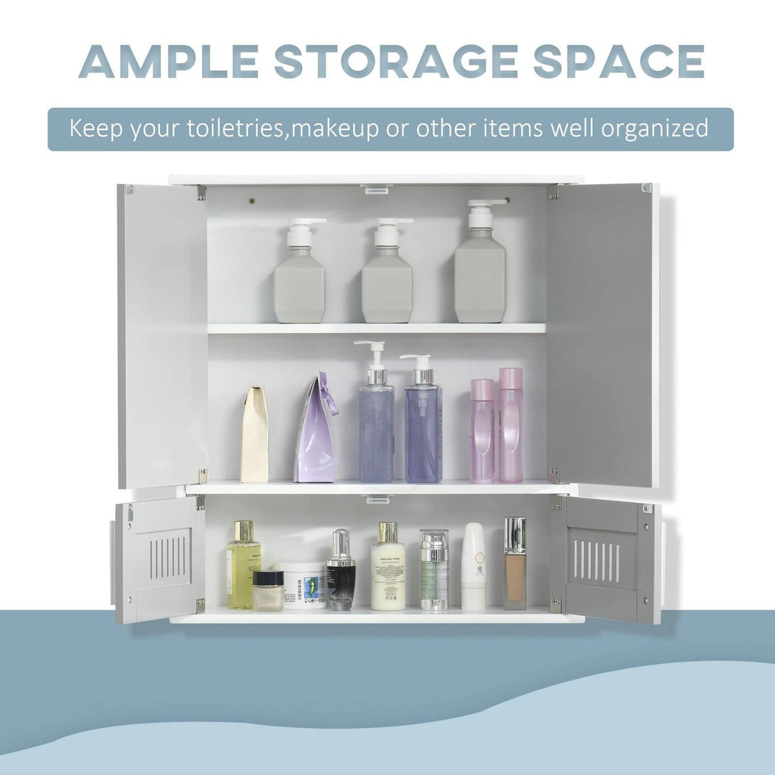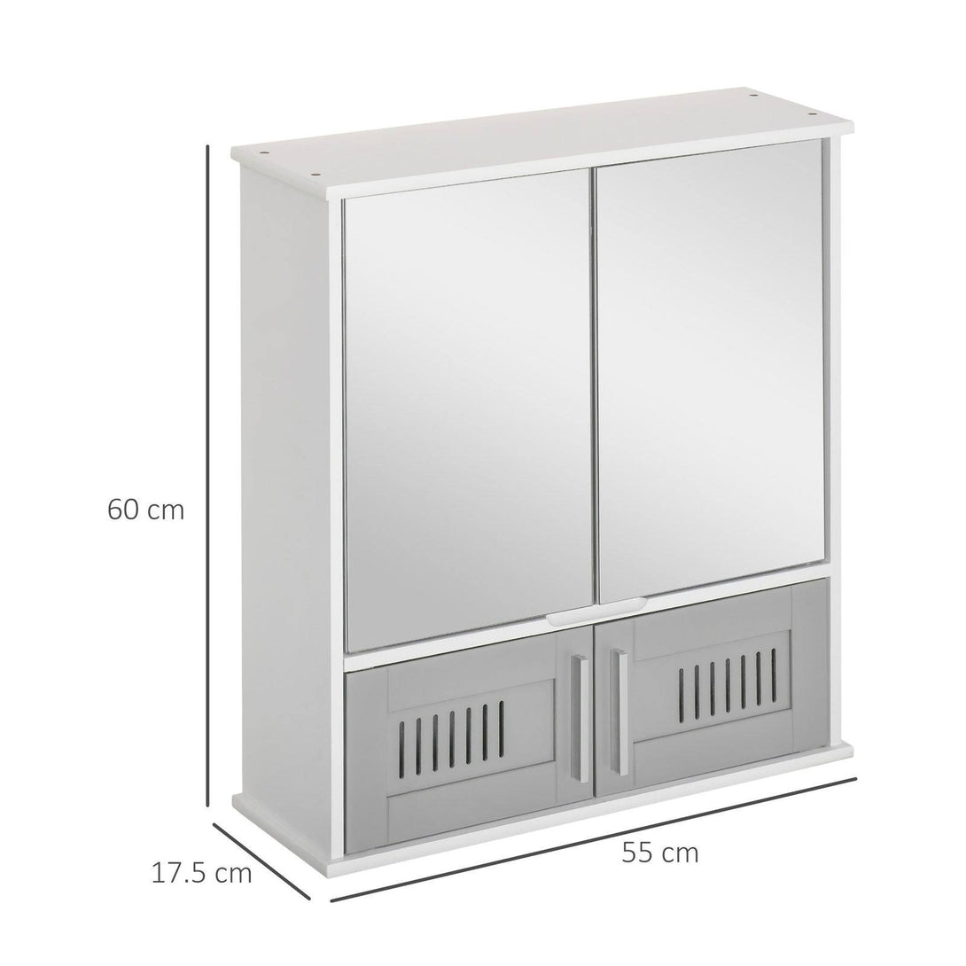 Creating stylish bathroom storage option has never been so easy - this kleankin cabinet will do the trick instantly. Formed of a bottom shelf with small vented doors for airflow, with an two-compartment upper cabinet, there's plenty of space for keeping bottles, make-up, toiletries and everything in-between. Mirrored doors give you a place to see and get ready. The surface is painted for a smooth and easy-wipe finish. Setting it up is simple: simply fix on the wall securely and go.