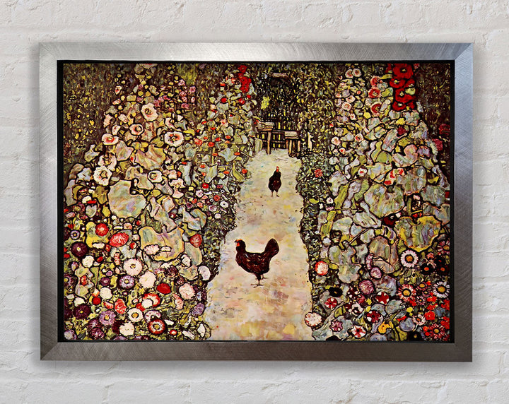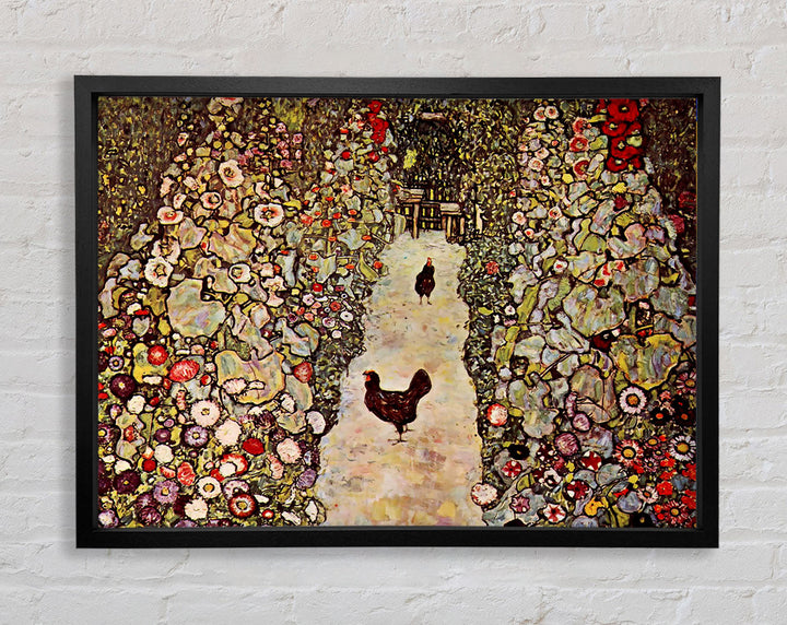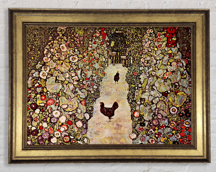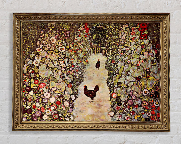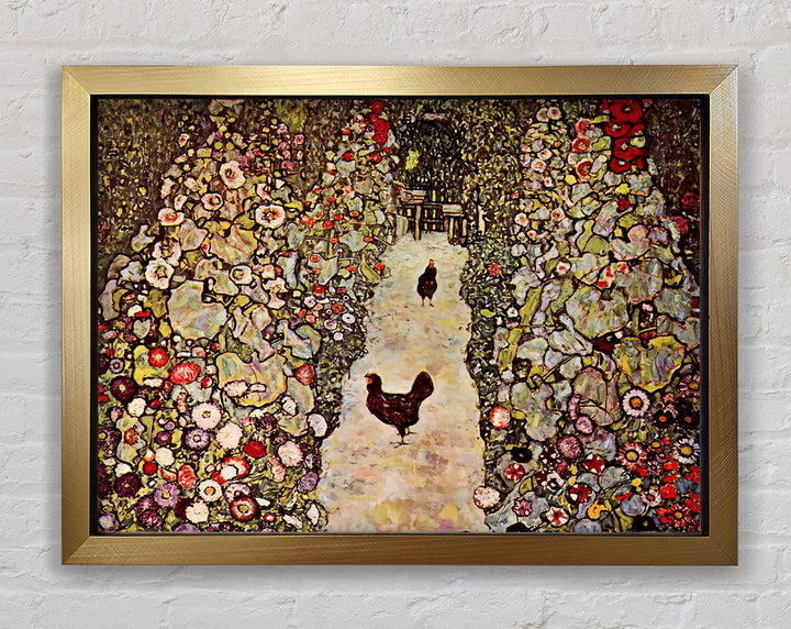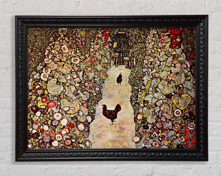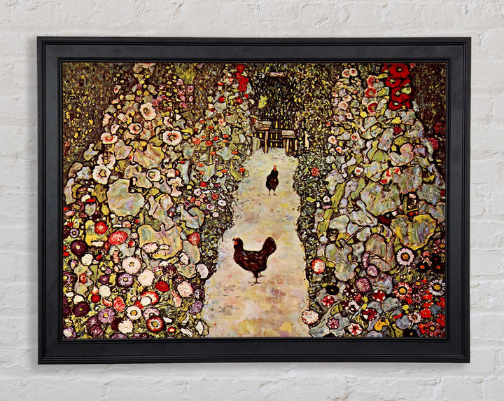 Introducing the Klimt Garden Path With Chickens Framed Print, a stunning piece of framed art that brings charm and elegance to any space. This beautiful artwork is available in 6 sizes, ranging from small to oversized, allowing you to find the perfect fit for your home or office. The vivid colors and intricate details of Klimt's garden scene are captured flawlessly, making it a visual treat. Each print is handmade in the United Kingdom, ensuring top-notch craftsmanship and quality. Ready to hang, this framed art offers a hassle-free way to elevate your décor. Let this exquisite piece add a touch of sophistication to your surroundings.