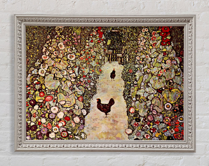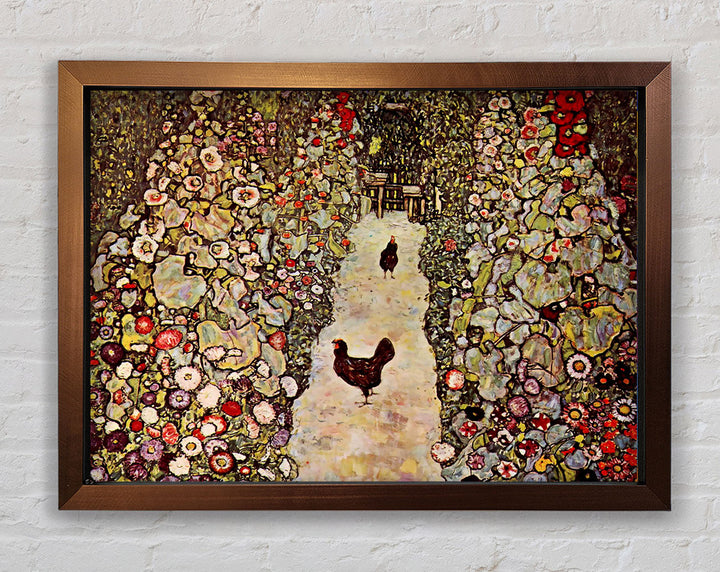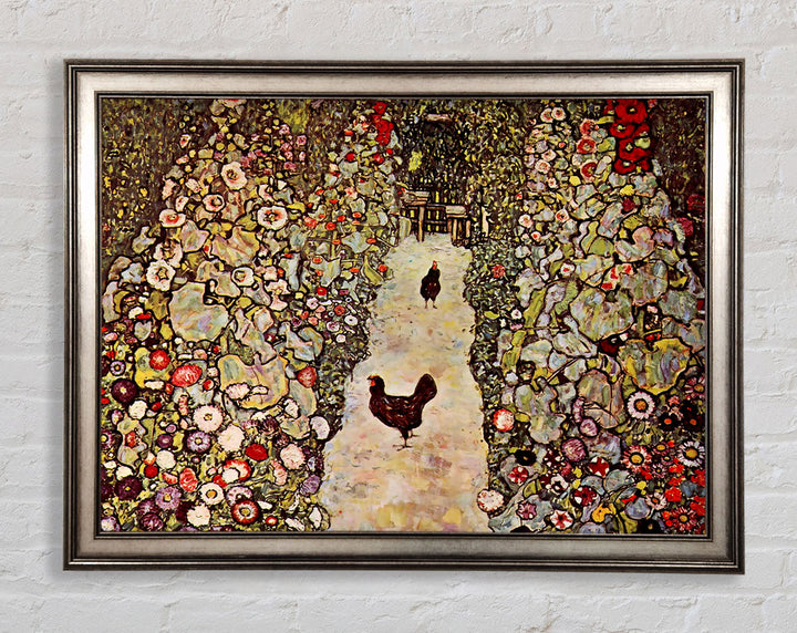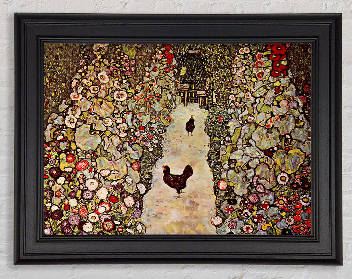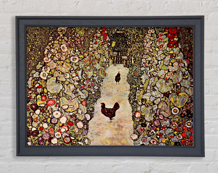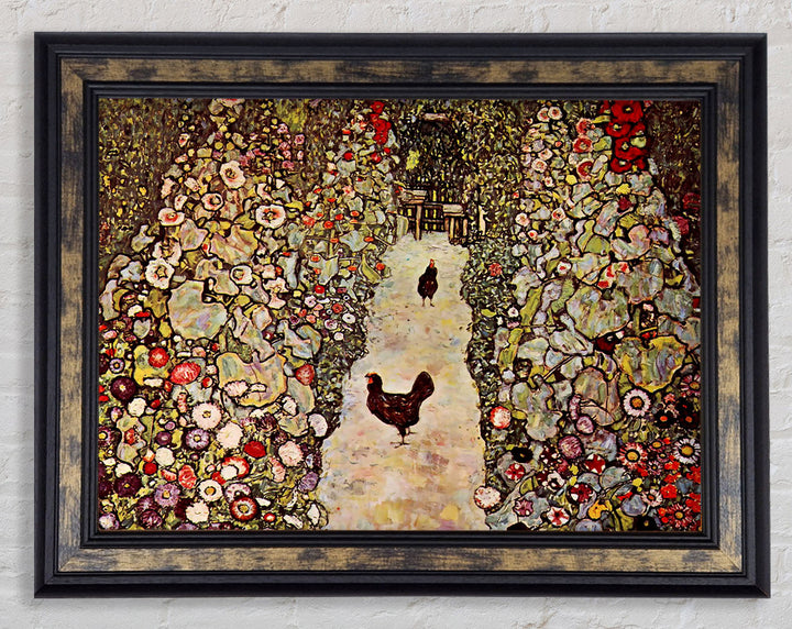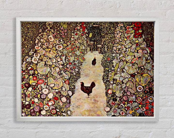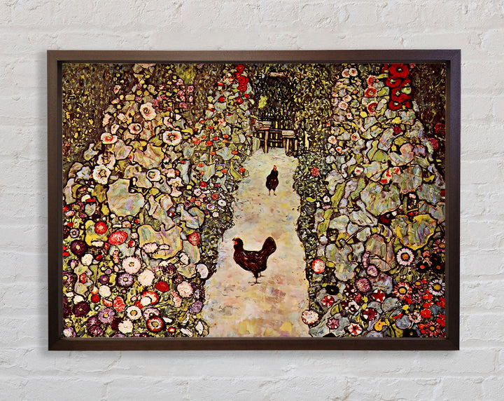 Introducing the Klimt Garden Path With Chickens Framed Print, a stunning piece of framed art that brings charm and elegance to any space. This beautiful artwork is available in 6 sizes, ranging from small to oversized, allowing you to find the perfect fit for your home or office. The vivid colors and intricate details of Klimt's garden scene are captured flawlessly, making it a visual treat. Each print is handmade in the United Kingdom, ensuring top-notch craftsmanship and quality. Ready to hang, this framed art offers a hassle-free way to elevate your décor. Let this exquisite piece add a touch of sophistication to your surroundings.