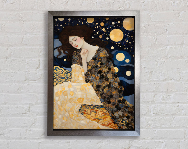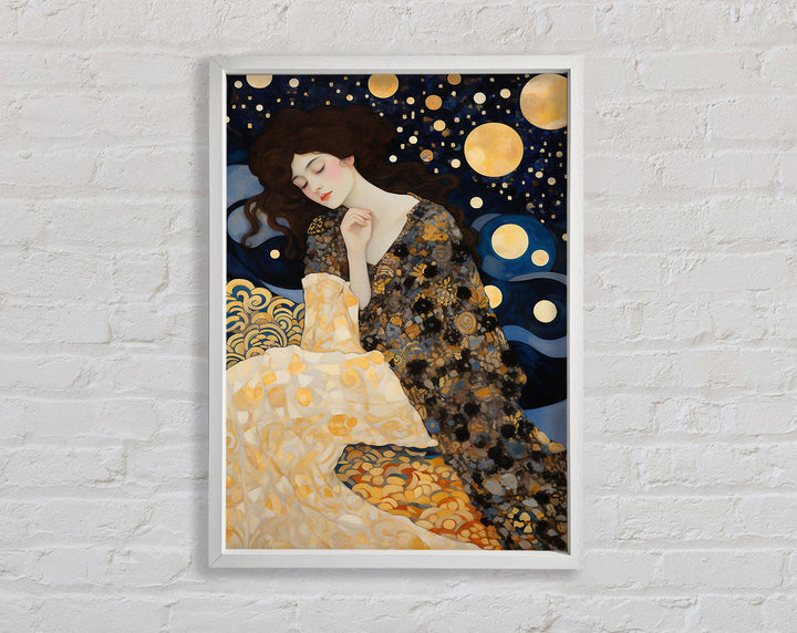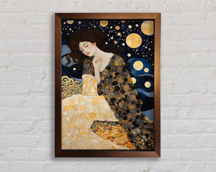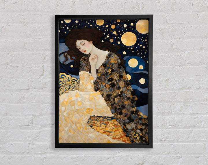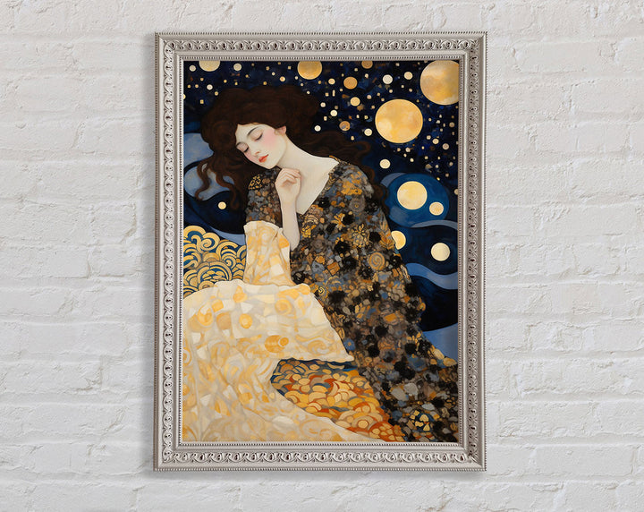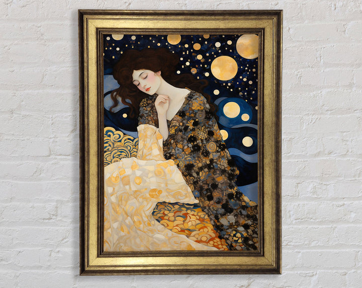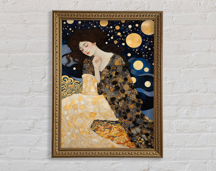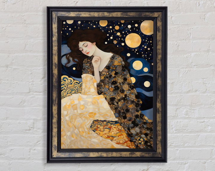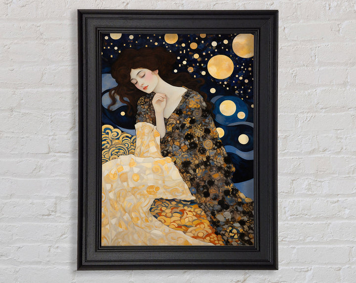 Add a touch of elegance to your home with the Klimt Lady At Night Framed Print. This stunning piece of framed art is available in six sizes, ranging from small to oversized, ensuring a perfect fit for any space. Crafted with meticulous attention to detail, each print is handmade in the United Kingdom, guaranteeing exceptional quality and craftsmanship. The vibrant colors and intricate details capture the beauty of Klimt's original work, creating a captivating focal point in any room. Ready to hang straight out of the box, this framed print offers a hassle-free way to elevate your décor. Transform your living space with this timeless masterpiece today.
