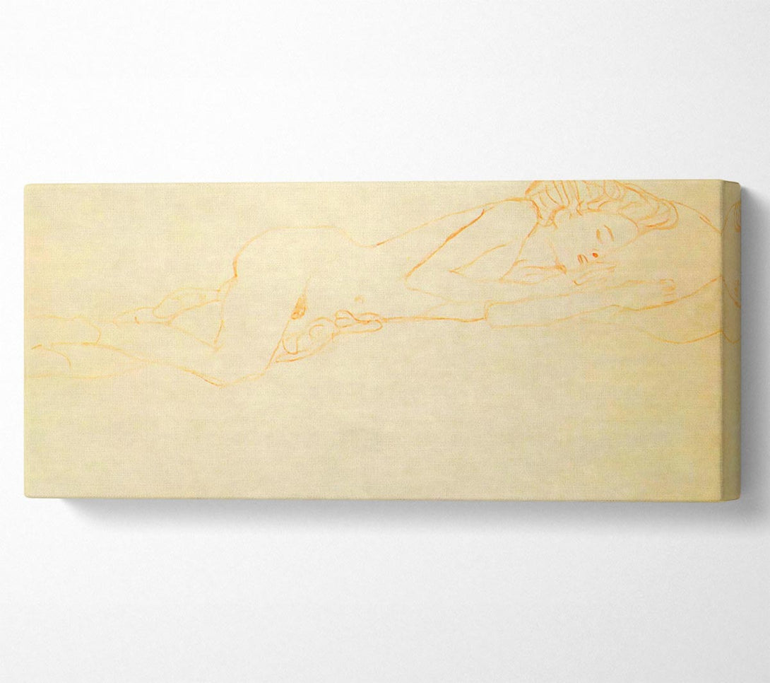 Klimt Liegender Female Nude canvas, printed on coated polyester canvas. Mounted on to a 44mm box frame, ready to hang.
