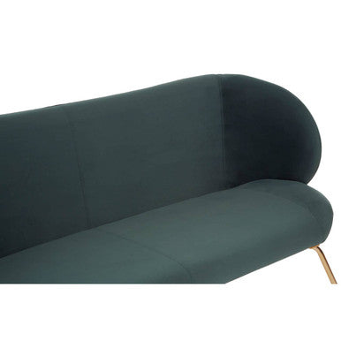 This two seat sofa is a pleasant addition for contemporary and modern living rooms. The modern sofa features a dark green fabric upholstery with sumptuous padded seat and curved backrest creating a luxe winged look. The dark upholstery is contrasted by the warm gold finished curved legs adding stability and style to it, making it a sleek and comfortable addition for your living room.