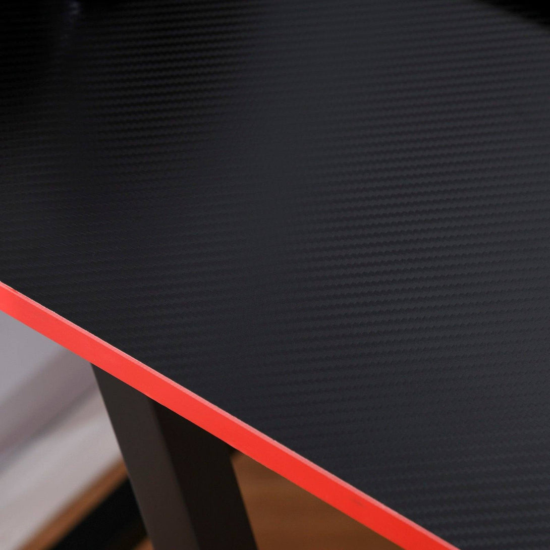 Make your gaming time extra fun with this stylish sports desk from HOMCOM. It features a large and small worktop, in a user-friendly design so you can sink into your gaming time comfortably. There is plenty of room to hold multiple monitors and other equipment so you have everything you need in one spot. The 'L' shape saves space and slots easily into corners to save space. The adjustable feet ensure the tables are level at all times. The perfect piece for creating your own gaming haven at home.