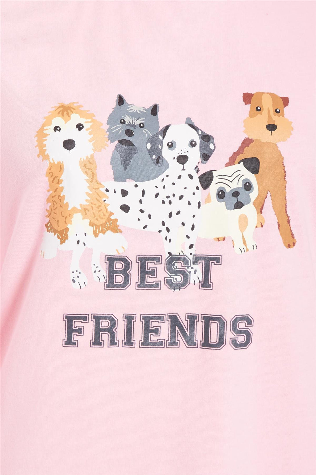 Description: Featuring an adorable pink dog print, these pyjamas add a fun and vibrant touch to your nightwear collection. The mix of the solid top and printed pants creates a visually appealing contrast.
