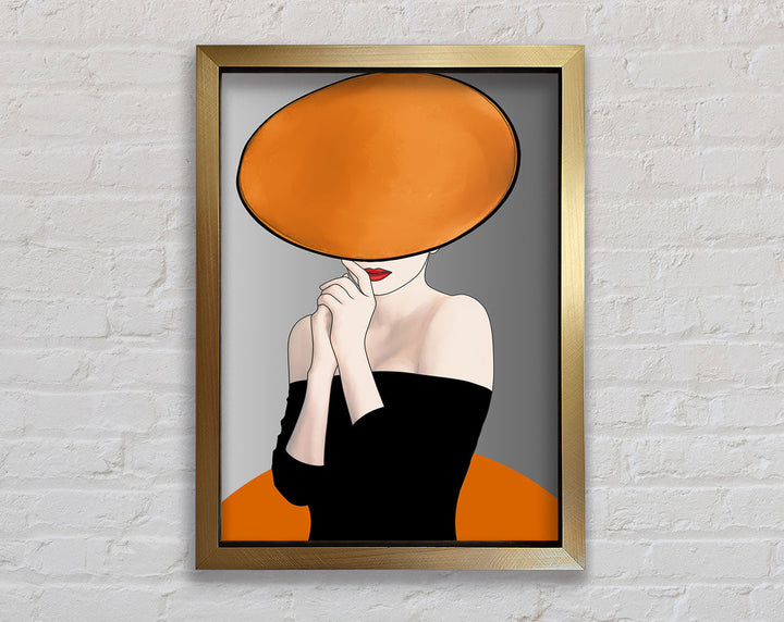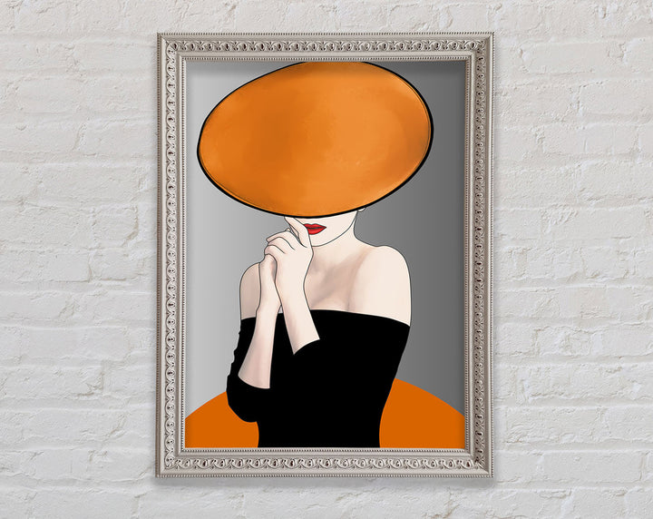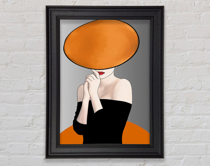 Lady In Orange Hat Wearing Black Dress Framed Print