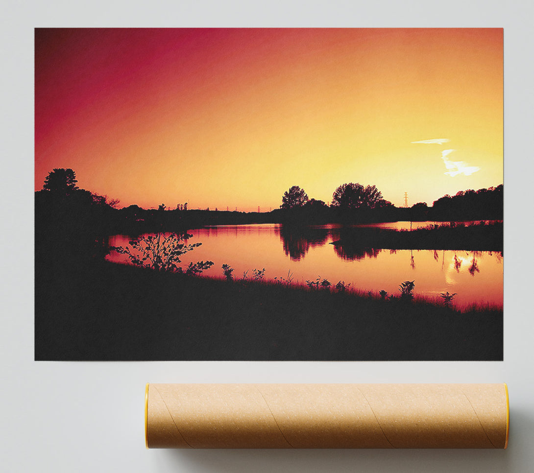 Lake At Sunset Poster