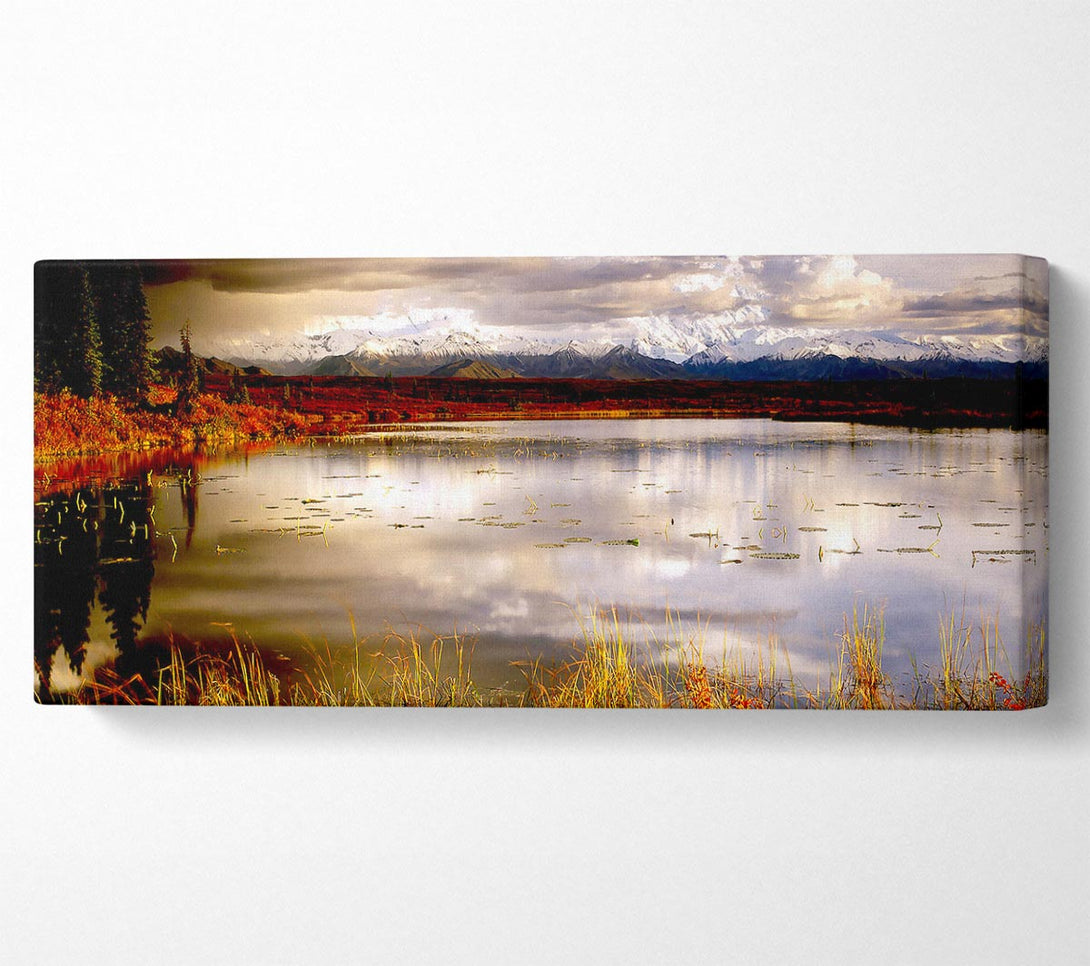 Lake Autumn Clouds canvas, printed on coated polyester canvas. Mounted on to a 44mm box frame, ready to hang.