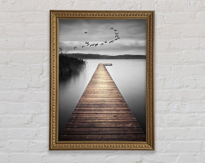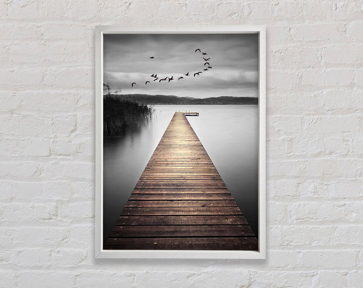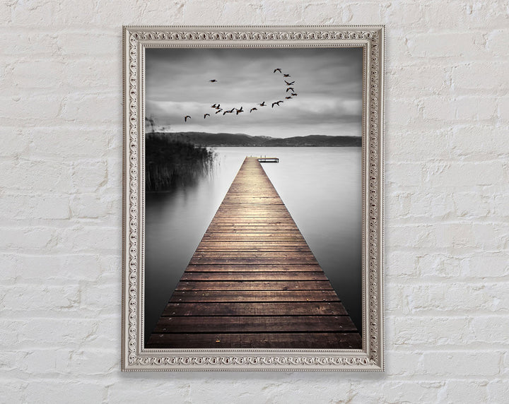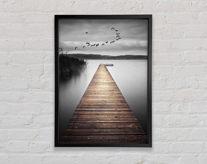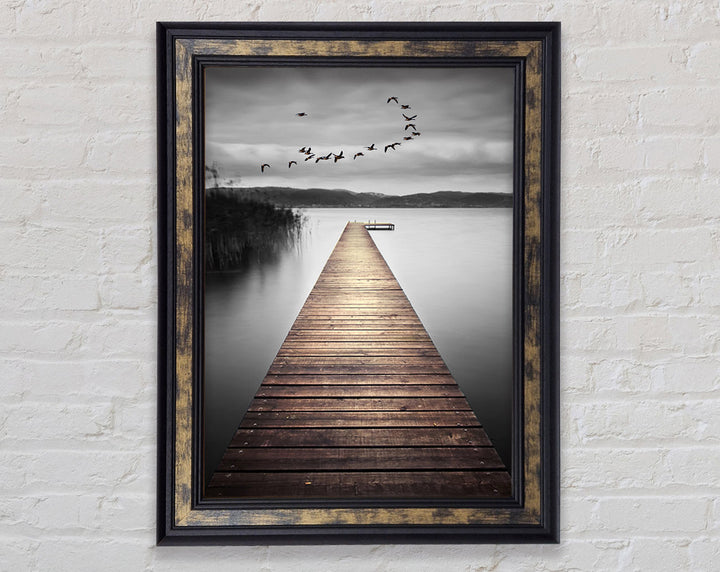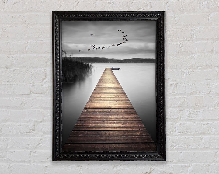 Introducing the Lake Boardwalk Grey Framed Print, a beautiful piece of framed art that adds a touch of serenity to any space. This stunning print captures a peaceful lakeside scene with a grey color palette that complements various décor styles. Available in six sizes, ranging from small to oversized, you can find the perfect fit for your room. Each print is handmade in the United Kingdom, ensuring exceptional quality and craftsmanship. Ready to hang right out of the box, this framed art makes decorating effortless. Choose from a variety of frame colors to match your taste and enhance your home's ambiance with this elegant and calming artwork.