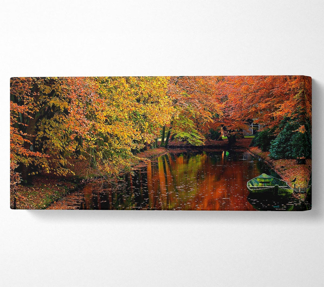 Lake In Autumn canvas, printed on coated polyester canvas. Mounted on to a 44mm box frame, ready to hang.