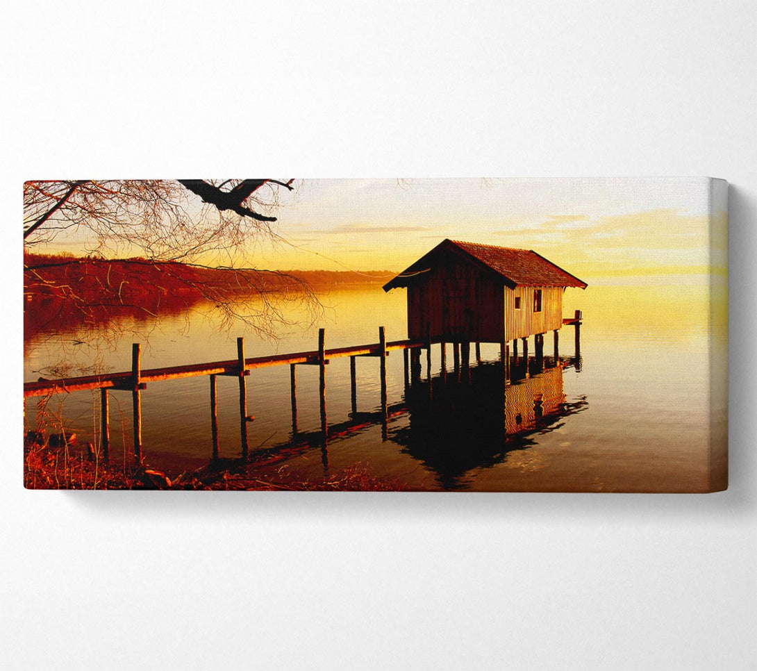 Picture of Lake Retreat Golden Panoramic Canvas Wall Art