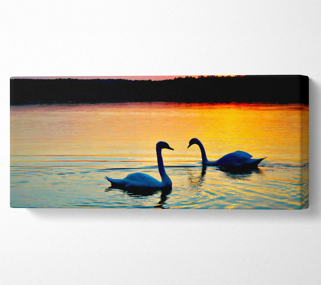 Picture of Lake Swans Panoramic Canvas Wall Art