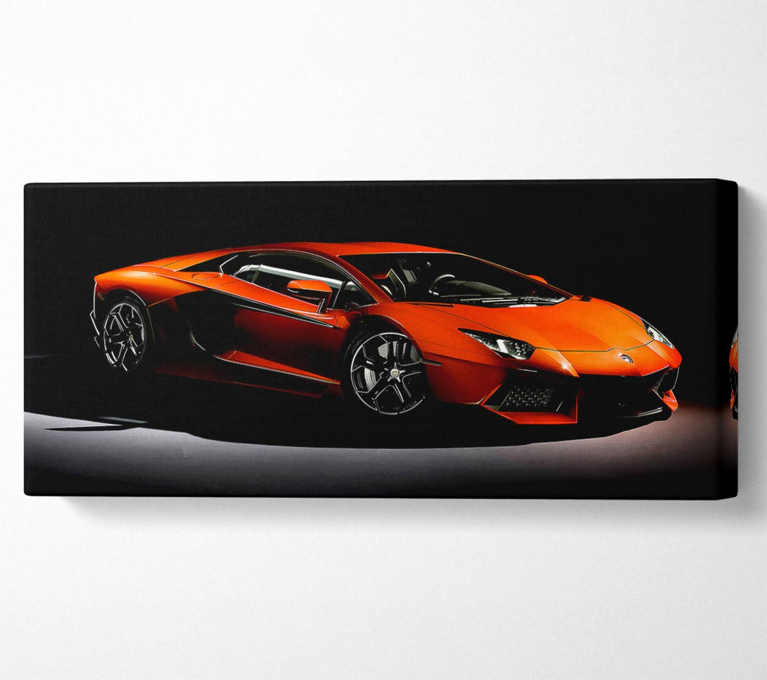 Lamborghini Aventador Orange canvas, printed on coated polyester canvas. Mounted on to a 44mm box frame, ready to hang.