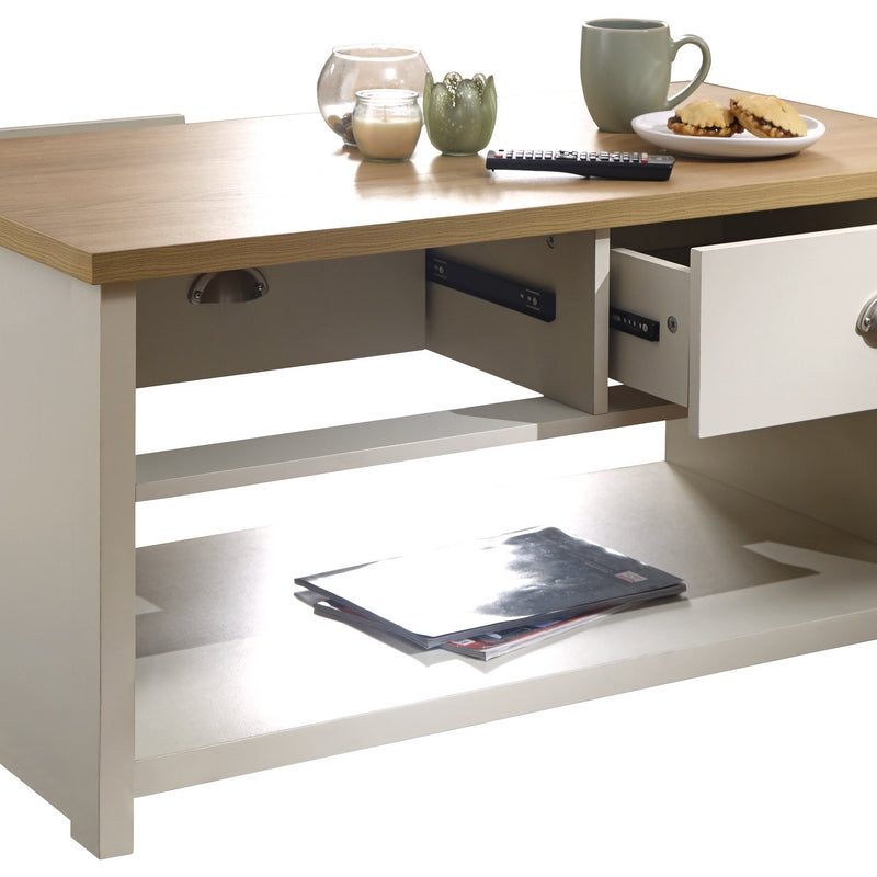 Lancaster Coffee Table Cream 1 Shelf 2 Drawers