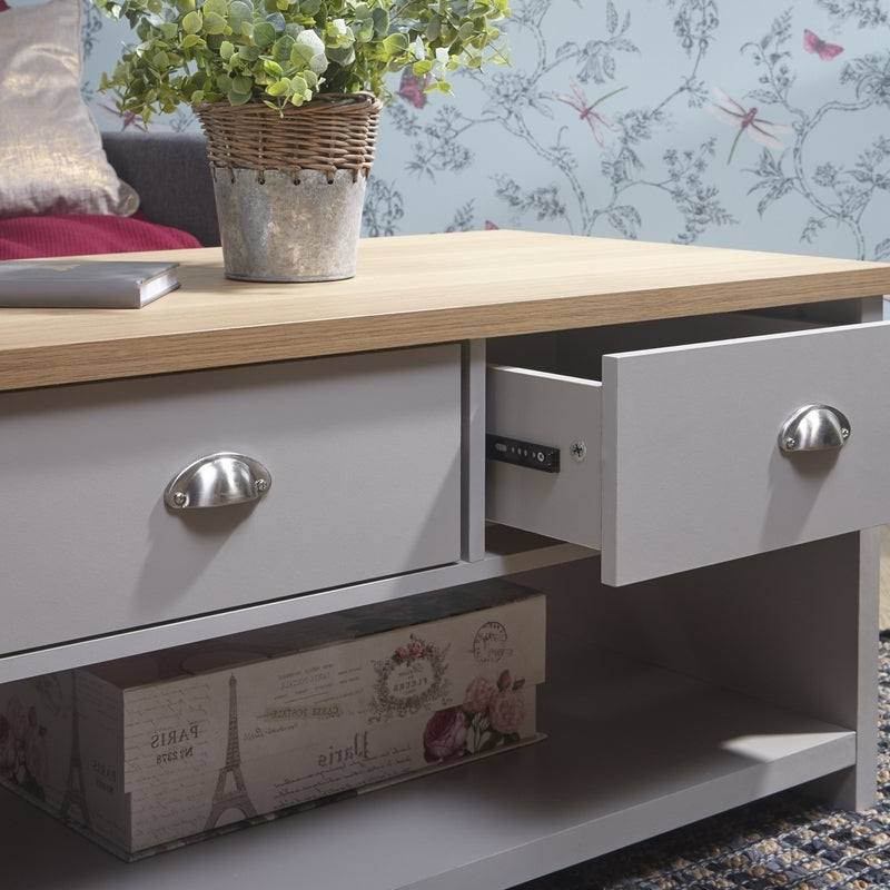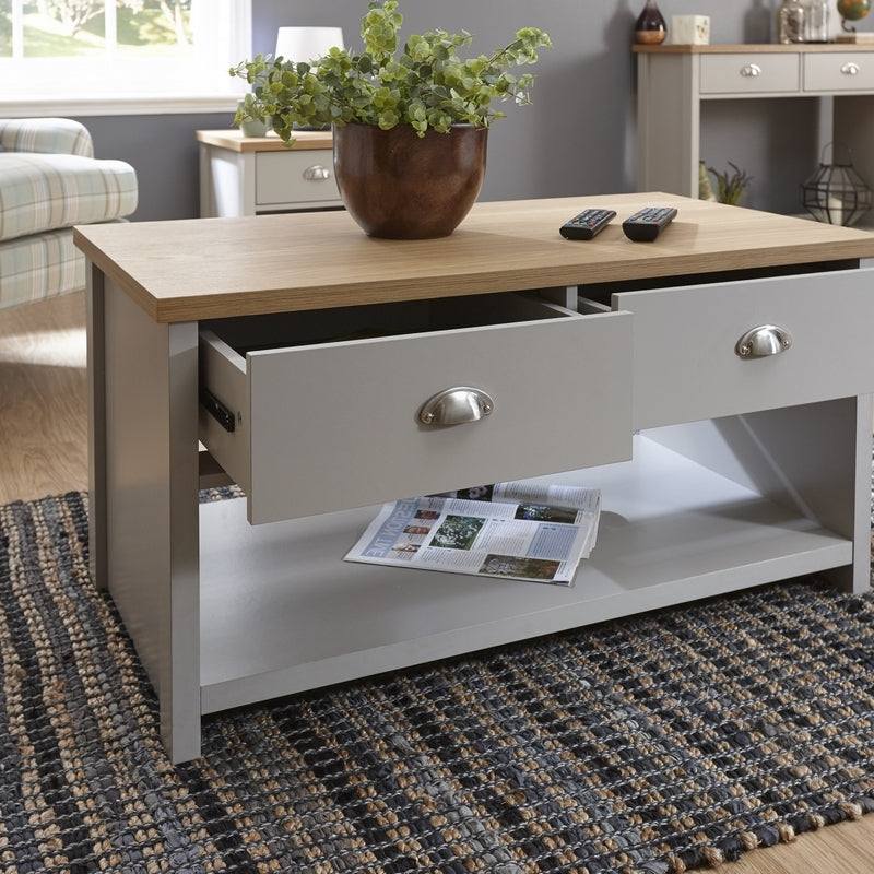 Lancaster Coffee Table Grey 1 Shelf 2 Drawers