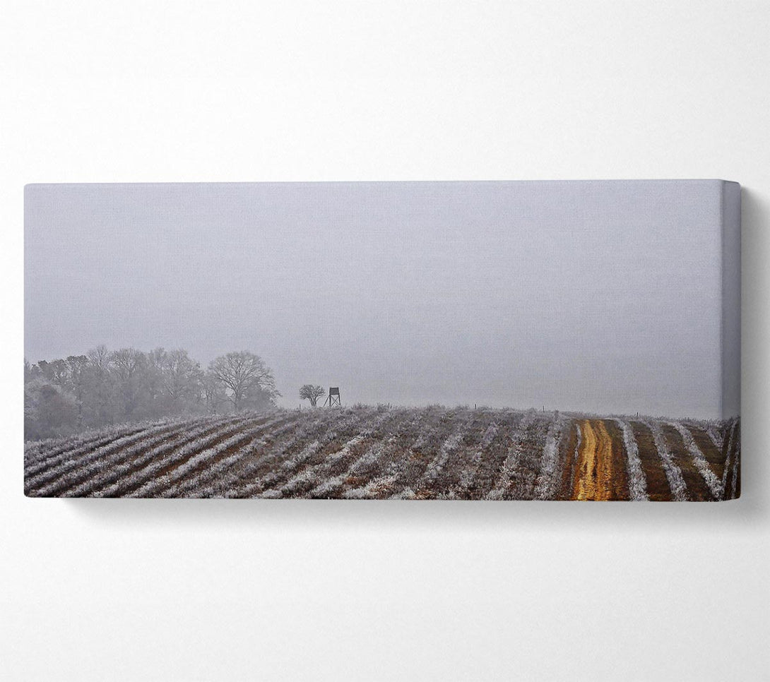 Land canvas, printed on coated polyester canvas. Mounted on to a 44mm box frame, ready to hang.