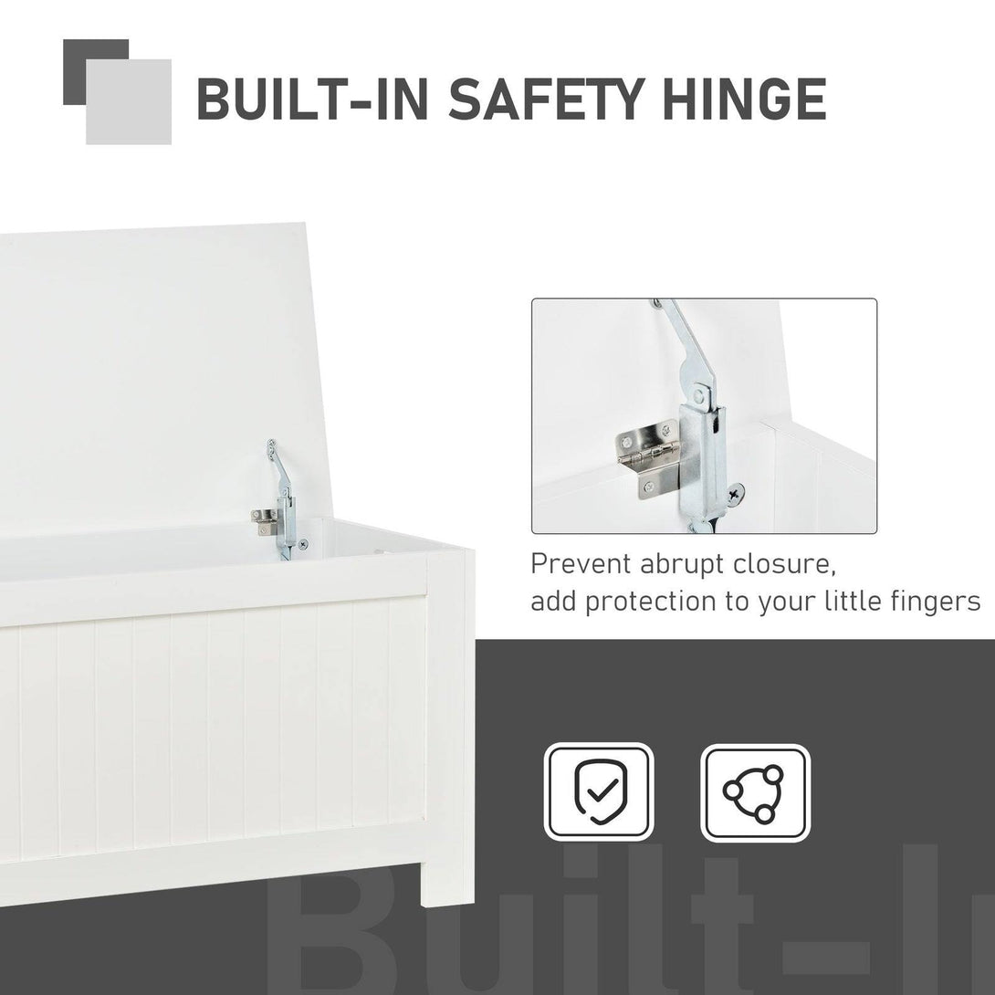 Deep and wide, this spacious chest from HOMCOM is the perfect piece for keeping your home tidy where needed. Made of particleboard, it's stable and easy to maintain and it features safety hinges so fingers don't get caught when opening and closing the lid. There are two handles so it can be carried with ease. With its simple shape and clean colour, this versatile piece will welcome itself in all bedrooms, hallways and playrooms galore.