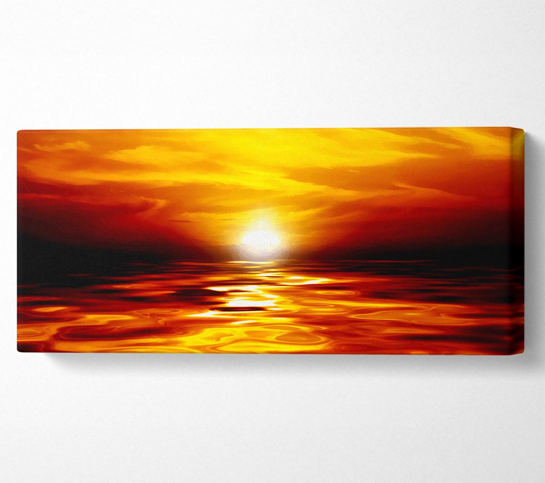 Lava Ocean Sunset Yellow canvas, printed on coated polyester canvas. Mounted on to a 44mm box frame, ready to hang.