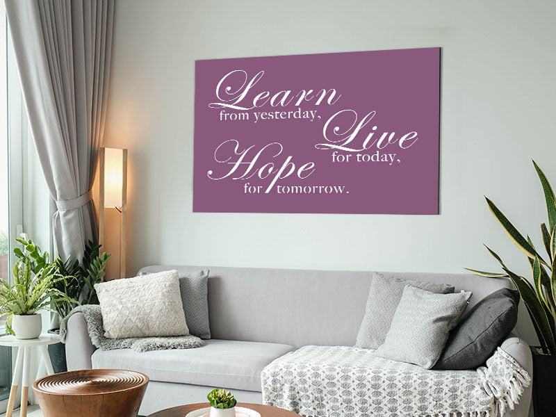 Learn Live Hope Dusty Pink Printed on brushed aluminium dibond. A modern way to display art and easy to maintain.