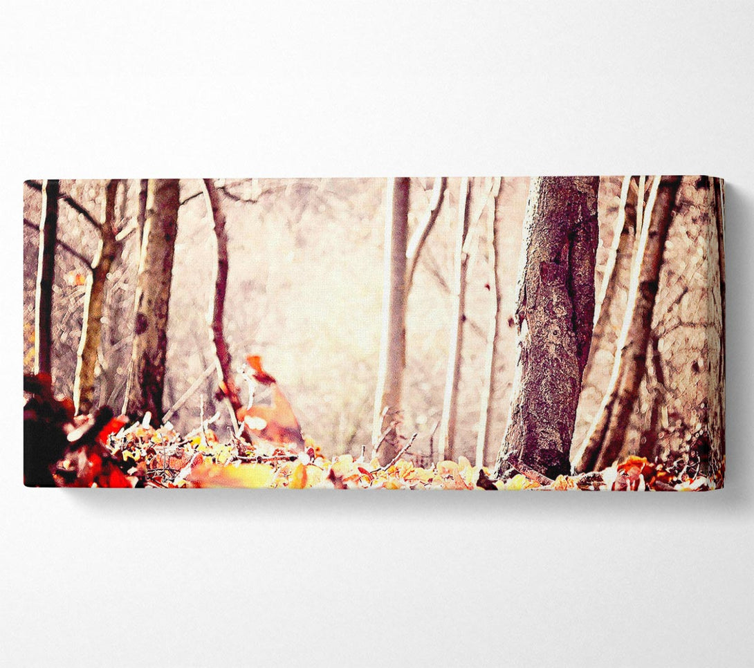 Picture of Leaves On The Autumn Ground Panoramic Canvas Wall Art