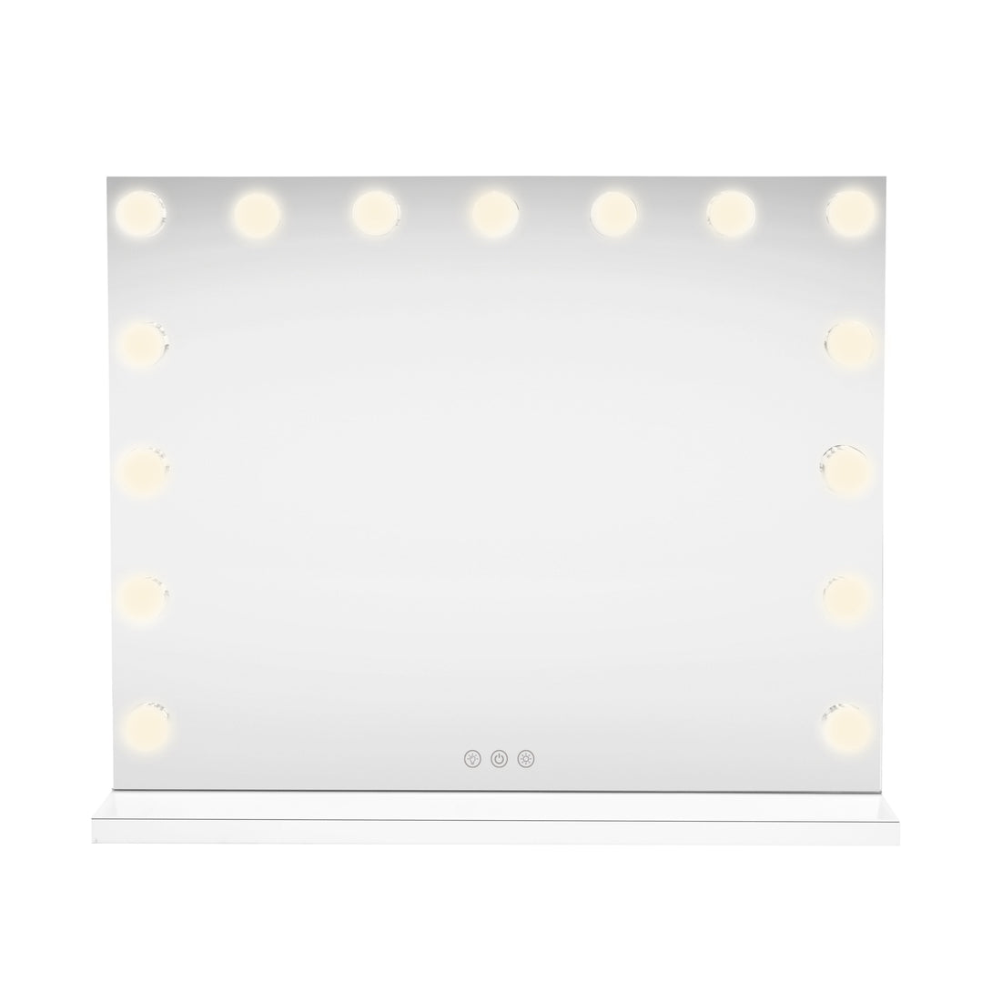 Designed for both makeup enthusiasts and professionals, this versatile mirror excels in makeup application, skincare routines, and hairstyling. Its sleek, modern frame is complemented by 15 dimmable LED bulbs, enhancing any room with a touch of sophistication.