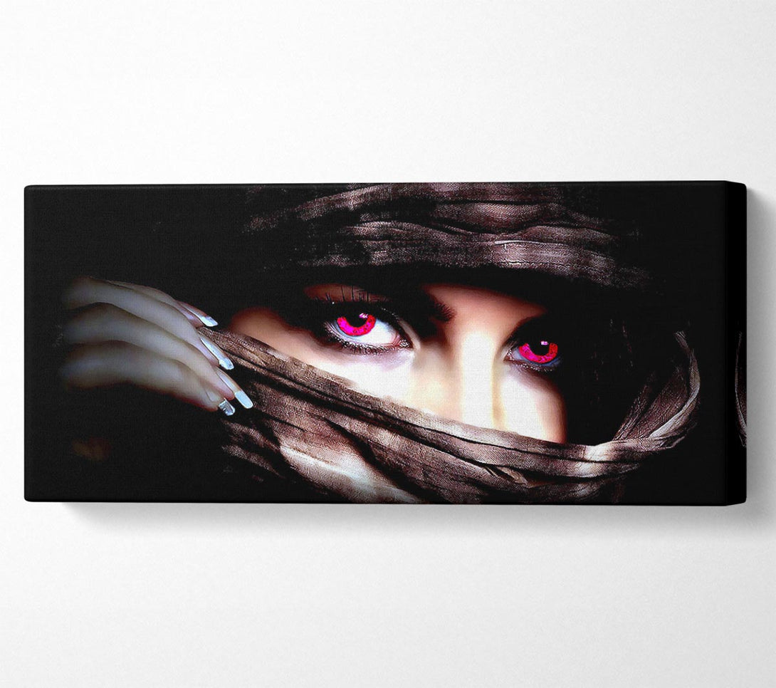 Legend Eyes canvas, printed on coated polyester canvas. Mounted on to a 44mm box frame, ready to hang.