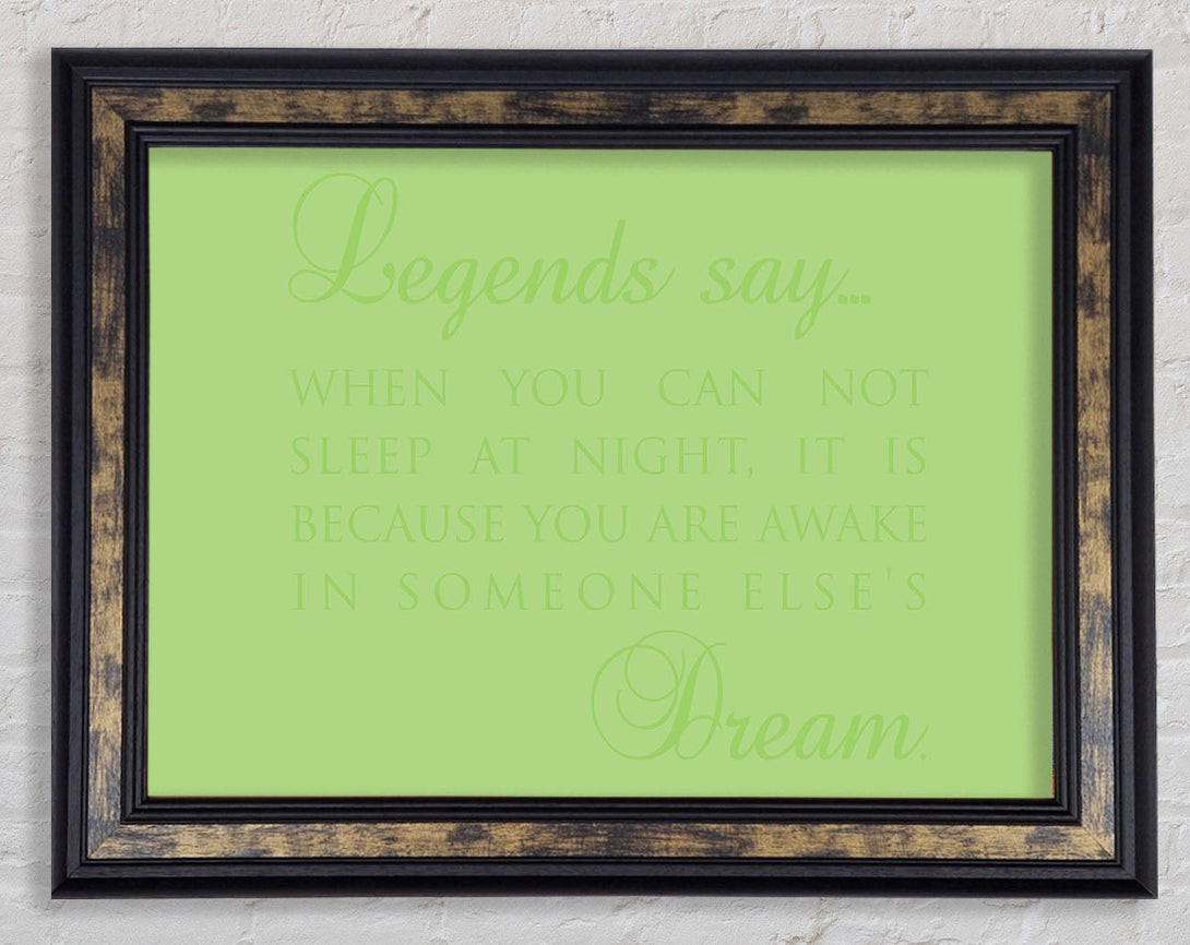 Legends Say Dream Lime Green Framed Print