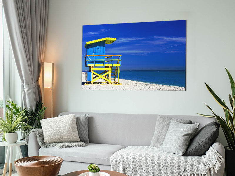Life Guard Hut Printed on brushed aluminium dibond. A modern way to display art and easy to maintain.