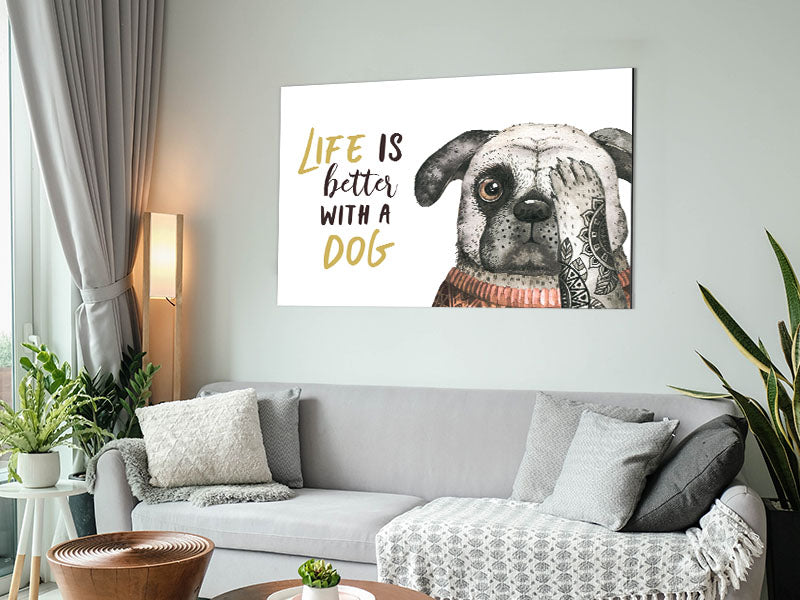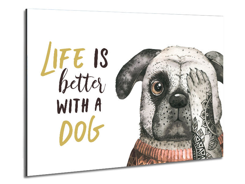 Life Is Better With A Dog Printed on brushed aluminium dibond. A modern way to display art and easy to maintain.