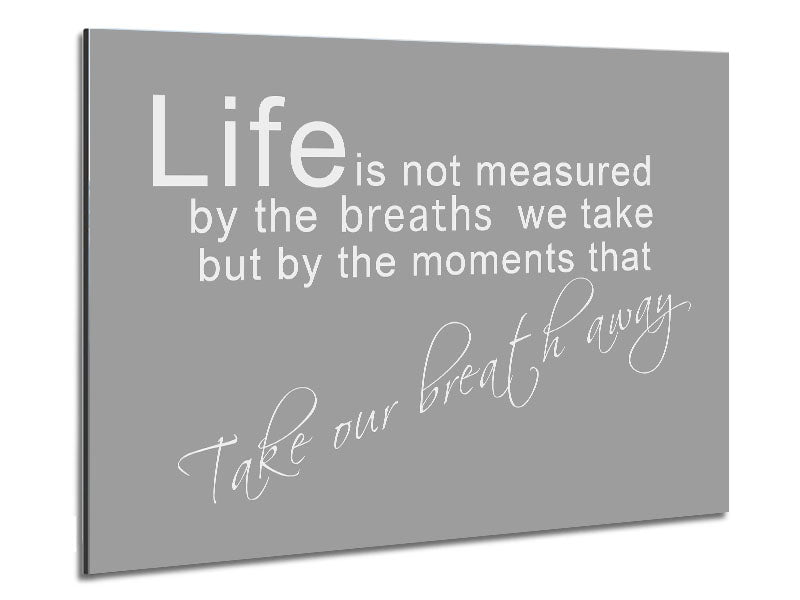 Life Is Not Measured Grey White Printed on brushed aluminium dibond. A modern way to display art and easy to maintain.