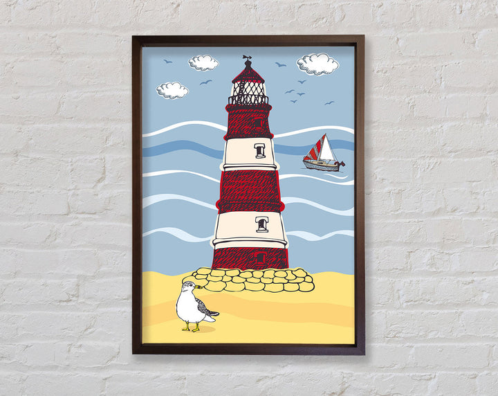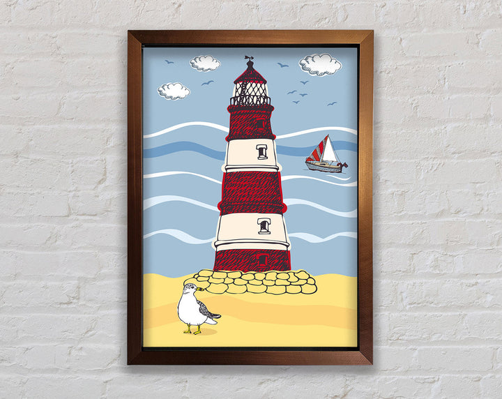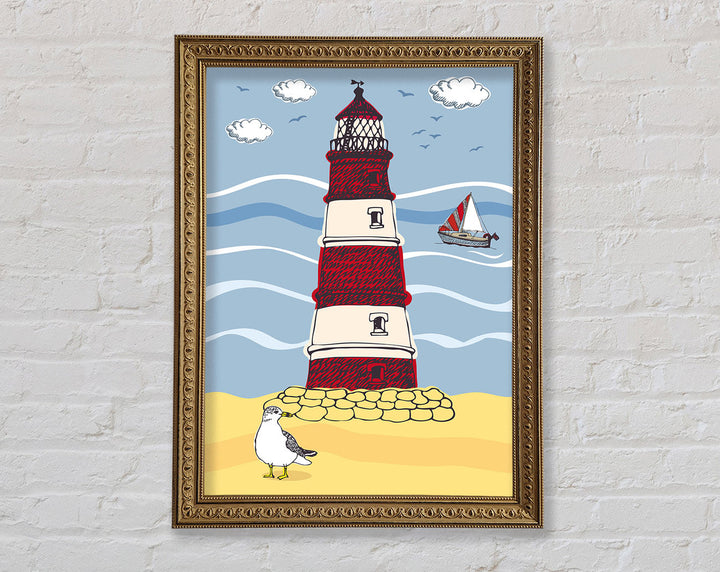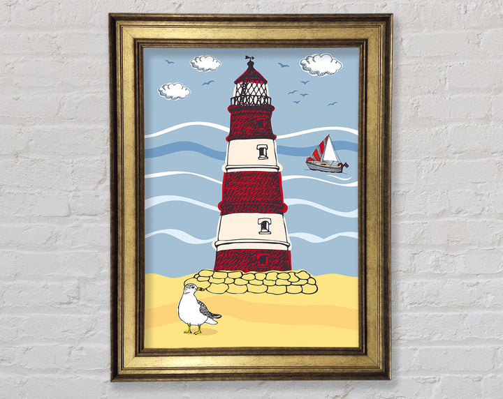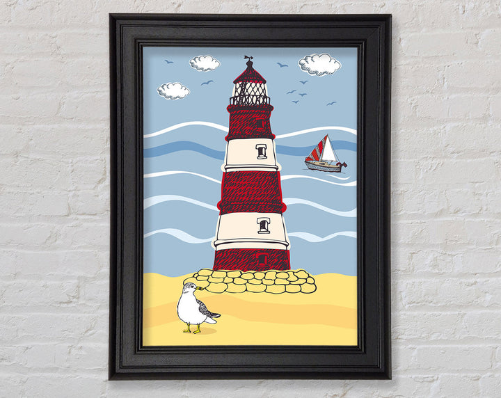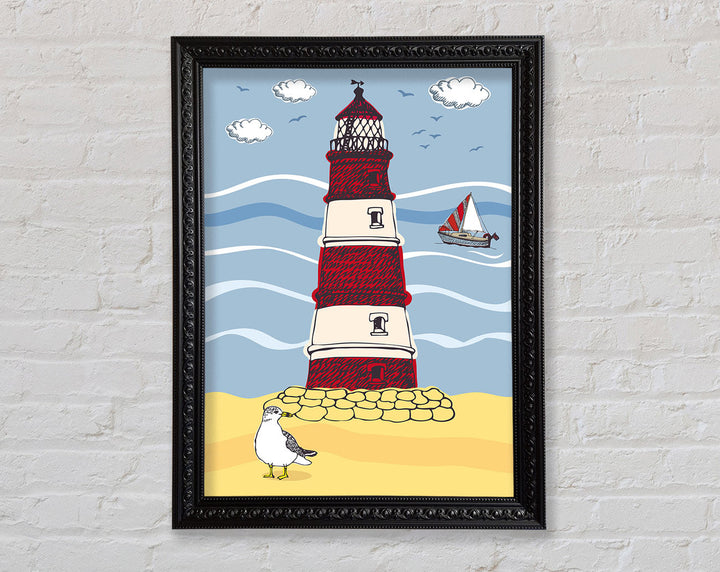 Introducing the Light House Bird Watch Framed Print, a charming piece of framed art that brings nature's beauty into your home. Available in six sizes, from small to oversized, this print can fit any space perfectly. The vibrant colors capture the serene moment of birds watching by a lighthouse, adding a touch of tranquility to your room.