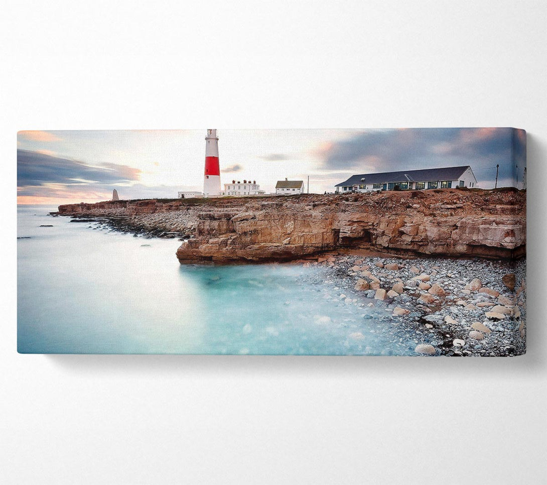 Picture of Lighthouse Ocean Rocks Panoramic Canvas Wall Art