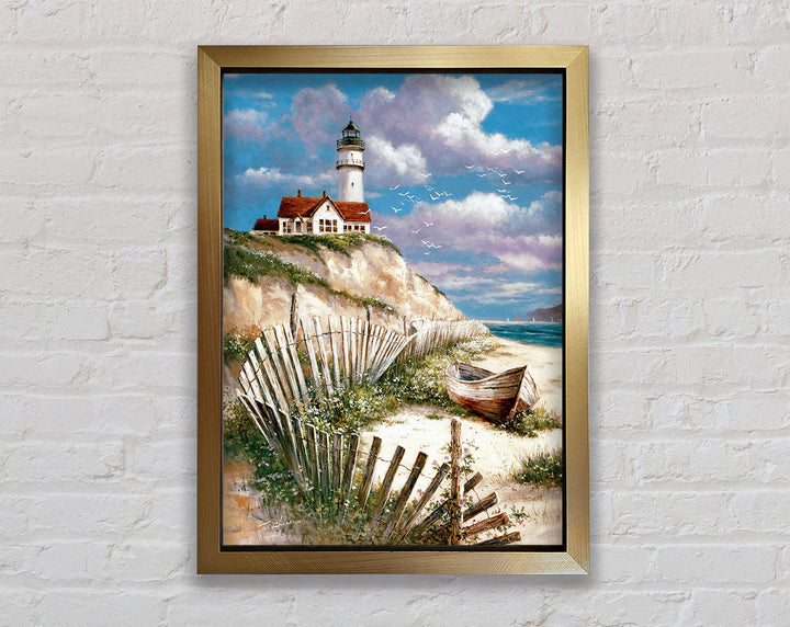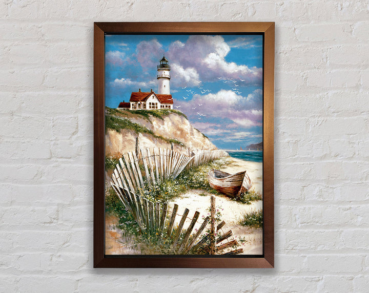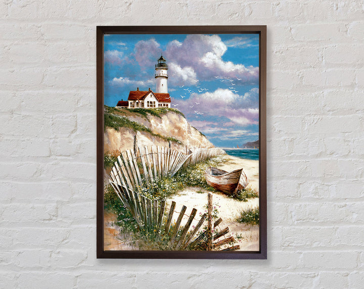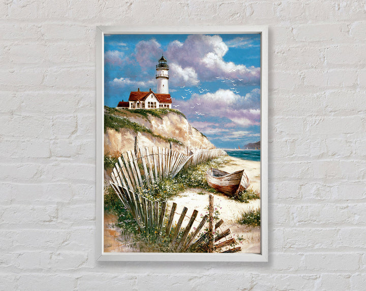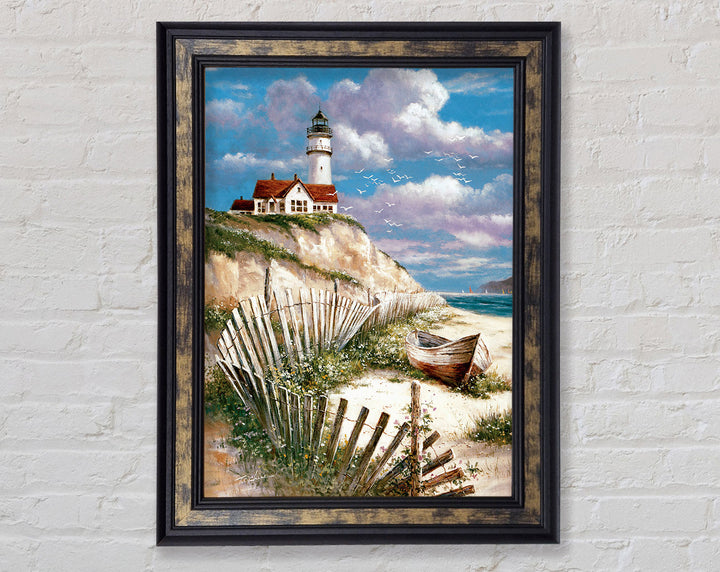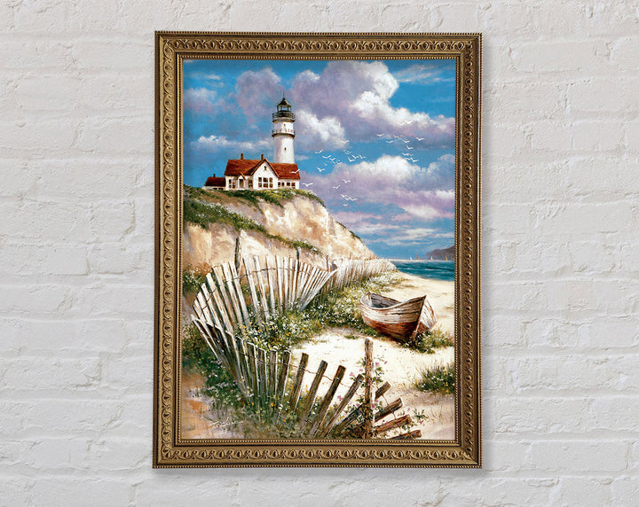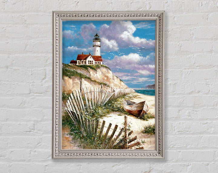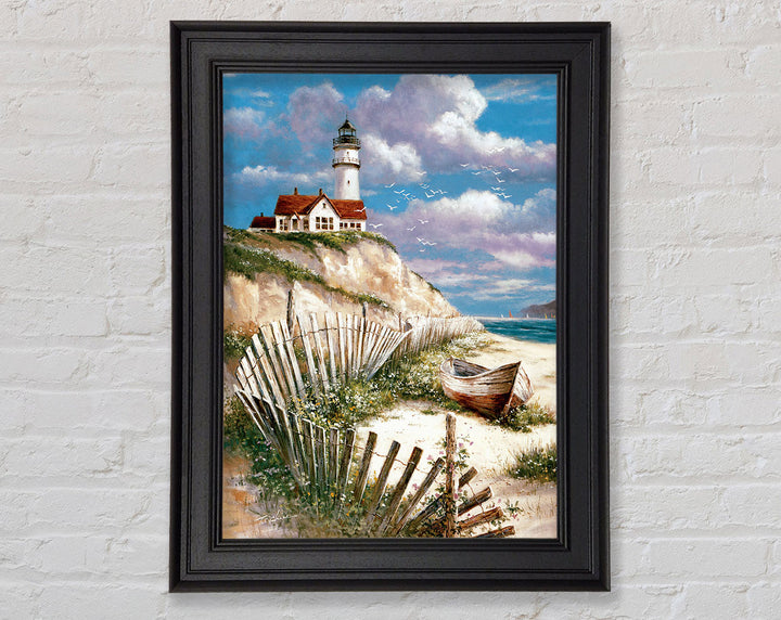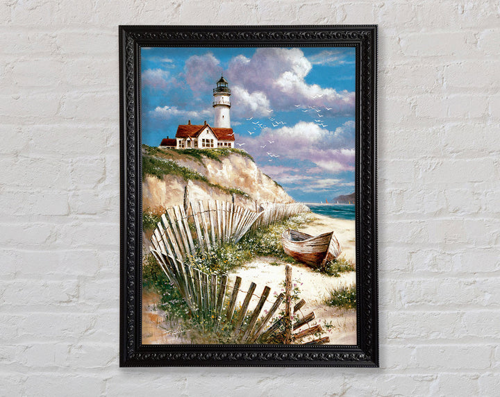 Brighten up your space with the Lighthouse On Cliff Framed Print, a stunning piece of framed art that captures the serene beauty of a lighthouse standing tall on a rugged cliff. Available in six sizes, from small to oversized, this print fits perfectly in any room. Choose from a variety of colors to match your decor. Each piece is handmade in the United Kingdom, ensuring top-notch craftsmanship and unique charm. Ready to hang right out of the box, this framed print makes decorating easy and hassle-free. Add a touch of coastal elegance to your home or office with this beautiful artwork.