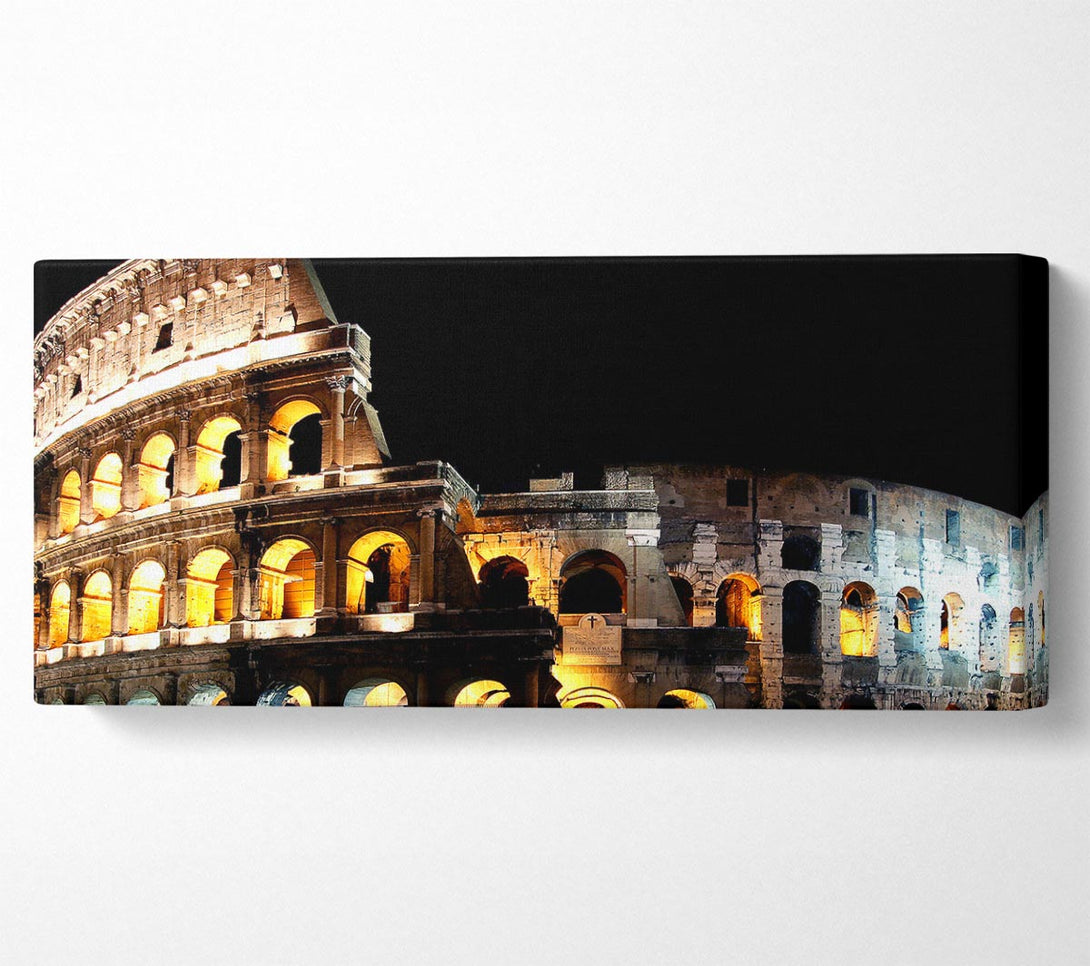 Lights Of The Colosseum canvas, printed on coated polyester canvas. Mounted on to a 44mm box frame, ready to hang.