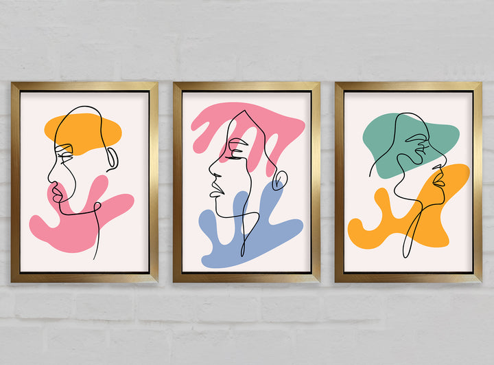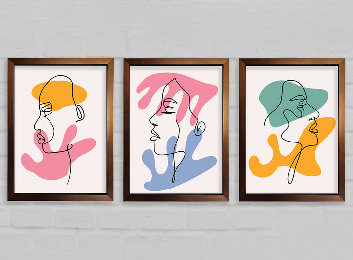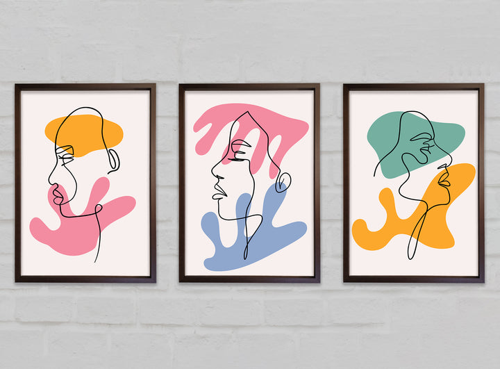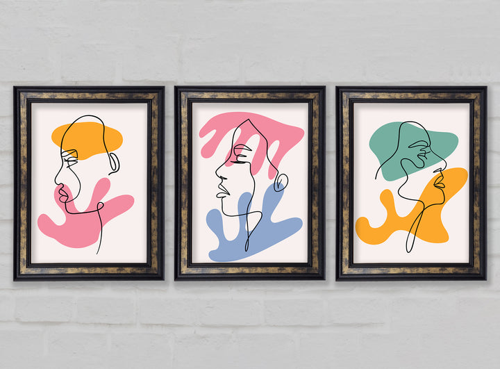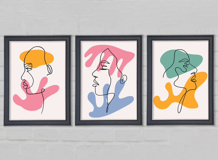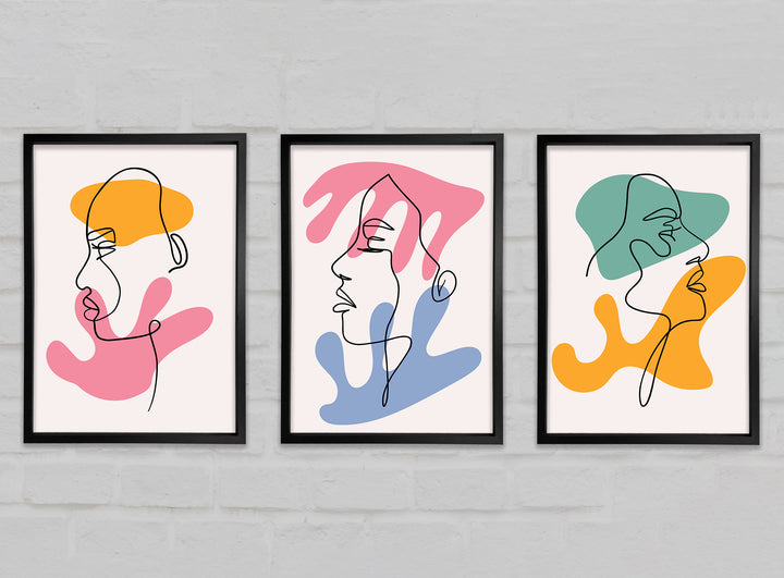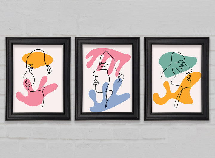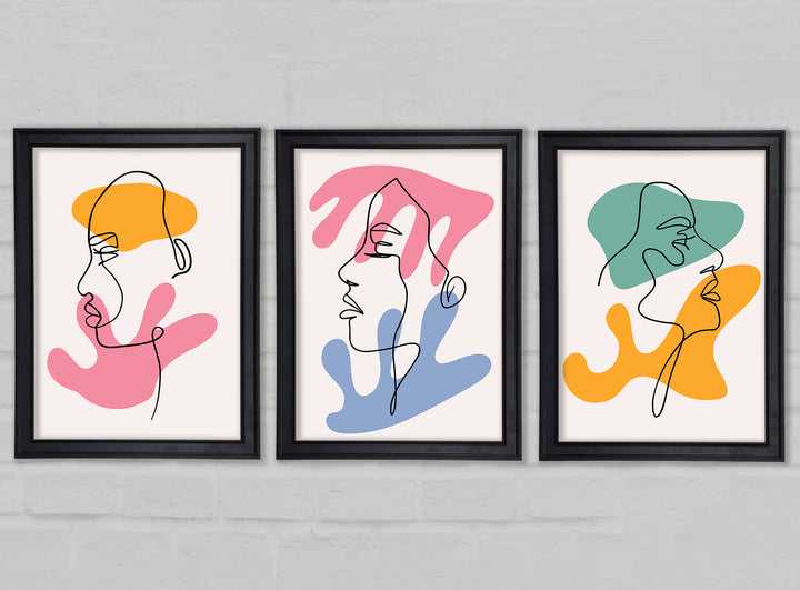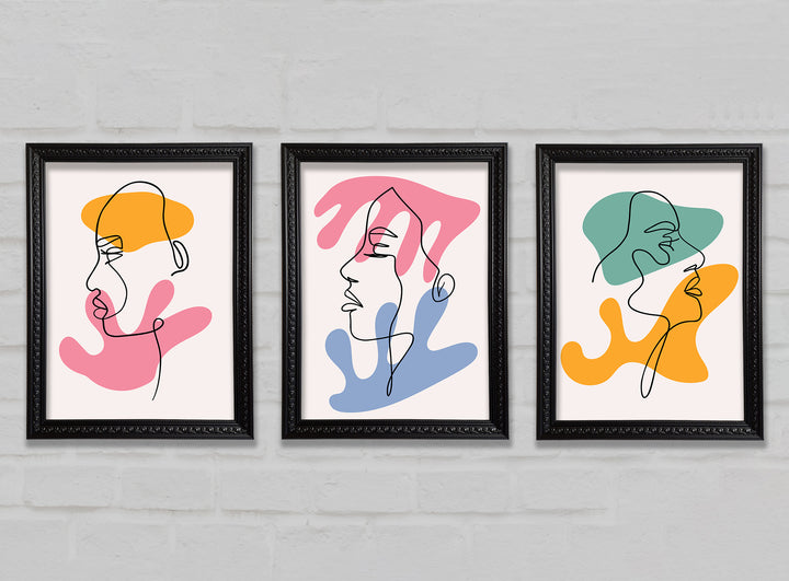 Line Art Blobs 2 set of 3 framed print wall art, available in mutiple frame colours. Ready to hang from the box and handmade in the United Kingdom.