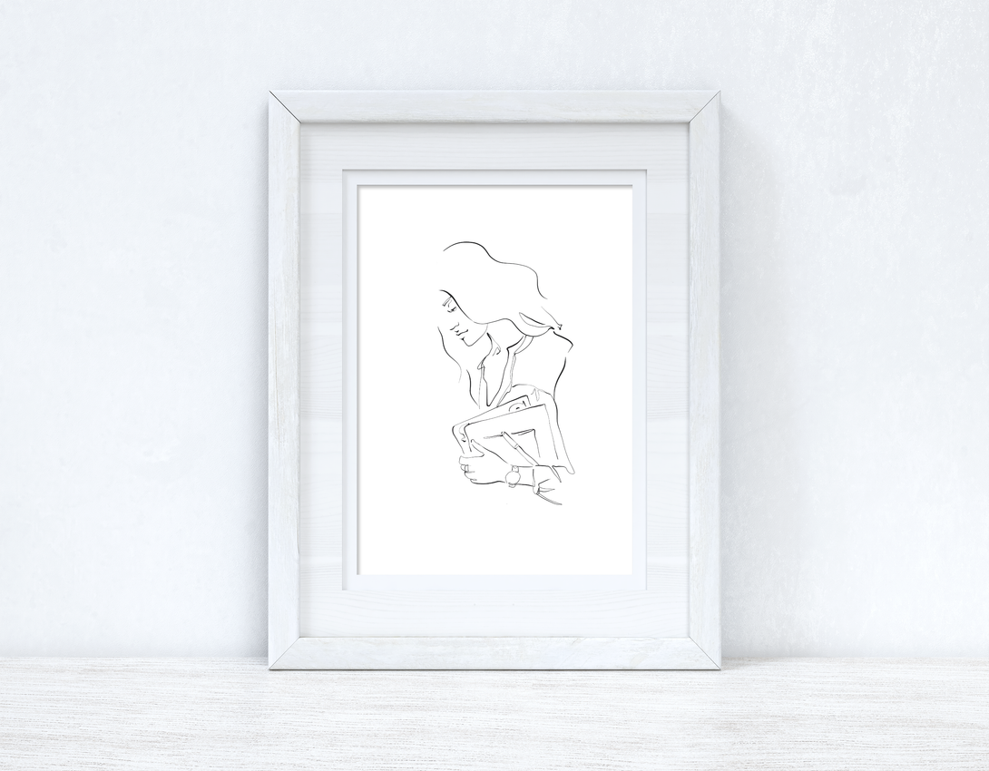 Line Work Woman Books Simple Home Bedroom Dressing Room Wall Decor Print